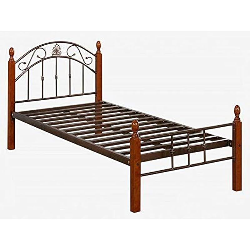 GDF GALAXY DESIGN FURNITURE Iron Metal & Oak Wood Single Bed, Black with Mahogany Legs 190L x 90W x 110H cm, GDF-19090, Twin