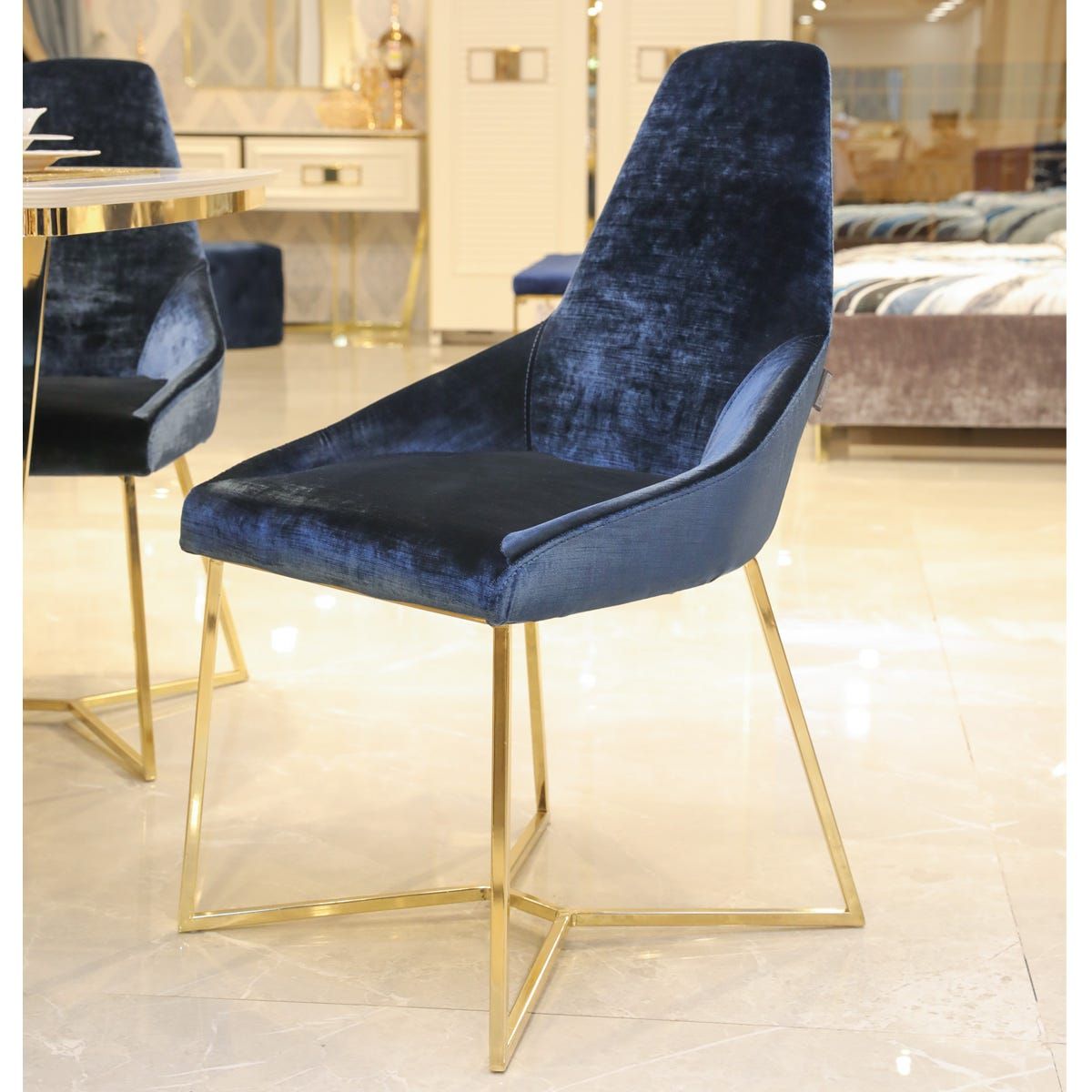 Gloria Dining Chair - Blue / Golden