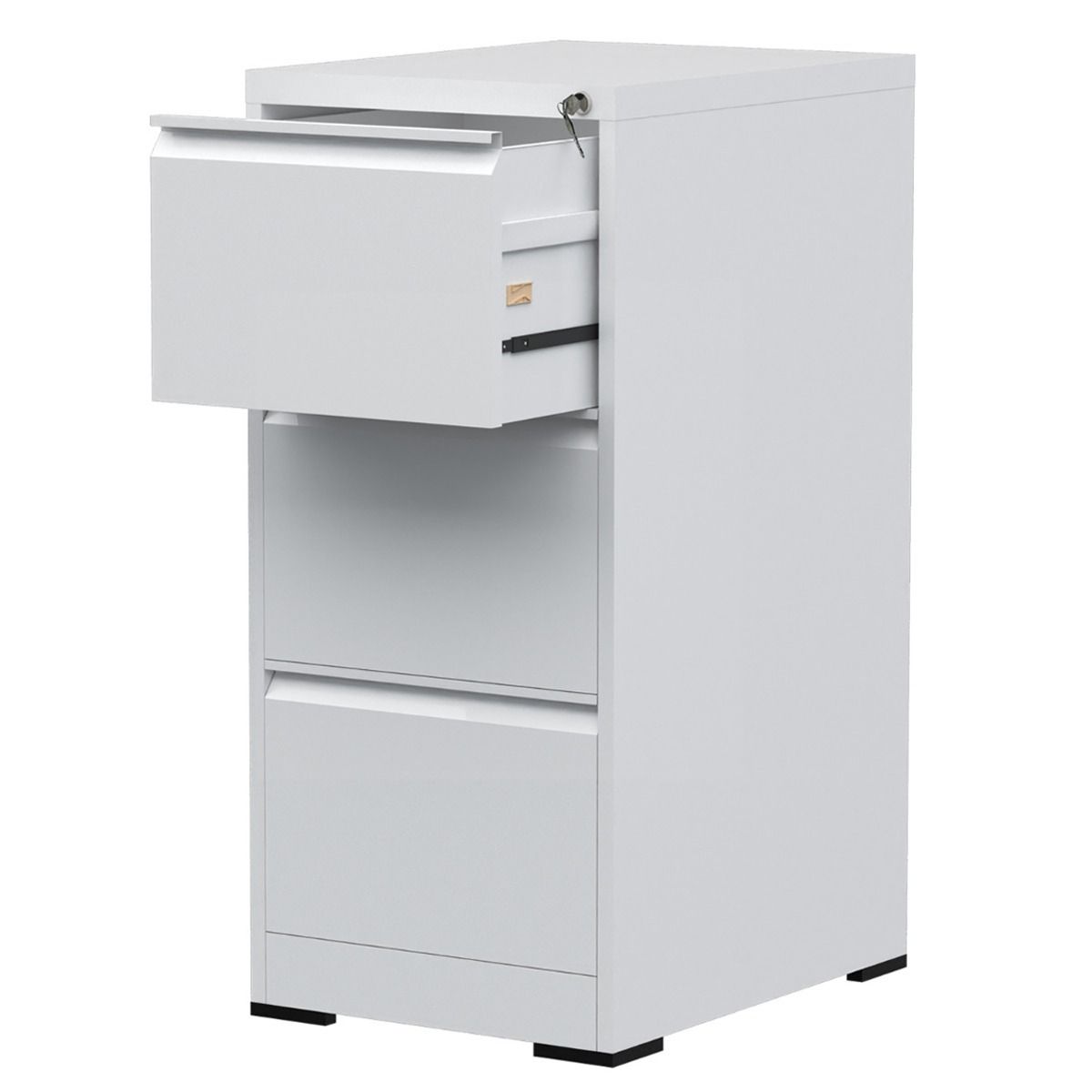 The cabinet features three spacious drawers equipped with full-extension ball-bearing slides for smooth and noise-free operation, even under heavy loads. Each drawer is designed to accommodate A4 and legal-sized documents, offering ample space for files and office essentials. The cabinet’s anti-tilt mechanism prevents multiple drawers from opening simultaneously, ensuring stability and safety during use.