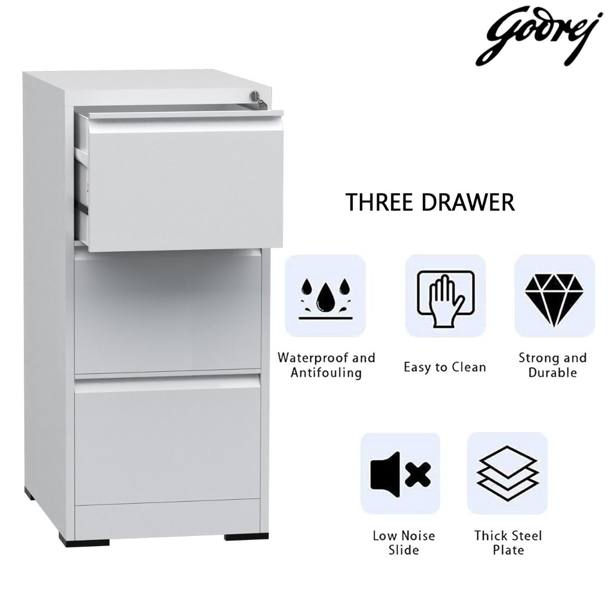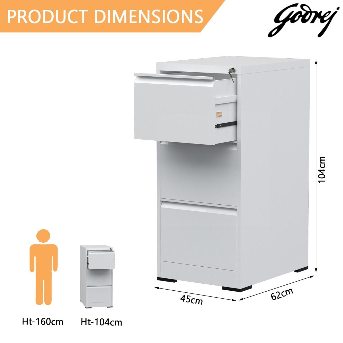 Invest in the Godrej 3 Drawer Steel Filing Cabinet White for a perfect blend of advanced features, robust construction, and timeless design that elevates your workspace to new levels of productivity and style.