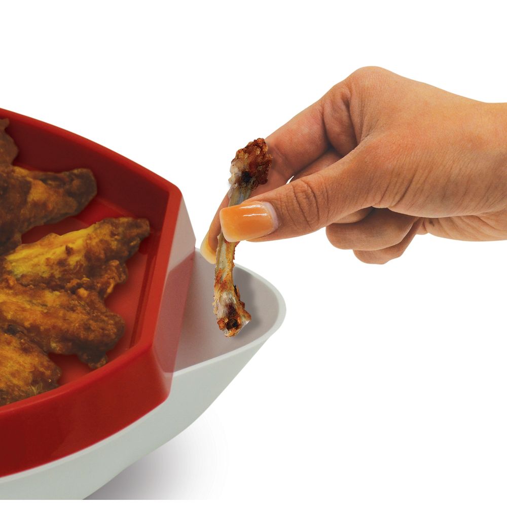 The Handy Gourmet Hide Away Platter is the ultimate serving tray designed for clean, convenient and organized snacking. This multi-purpose “Hot Wings Plate”, “Party Snack Tray”, and “Appetizer Serving Platter” features space to serve 12+ wings with room for veggies and two built-in dip compartments, making it perfect for ranch, BBQ sauce, cheese dip or ketchup. Ideal for game nights, parties, movie nights, BBQs, picnics, and family gatherings, it delivers a mess-free, enjoyable serving experience for everyone. Its smart hidden storage bowl beneath the serving tray discreetly collects chicken bones, shrimp tails, nutshells, toothpicks and food waste, keeping your dining table clean, organized and hygienic while guests enjoy their snacks. Perfect as a personal plate or as a shared party platter, it is designed for both individual use and entertaining guests. Made from high-quality BPA-free, food-safe material, the platter is microwave safe, freezer safe and dishwasher safe. Durable, reusable and ideal for everyday use, this convenient serving tray saves time, reduces mess and enhances your hosting experience.