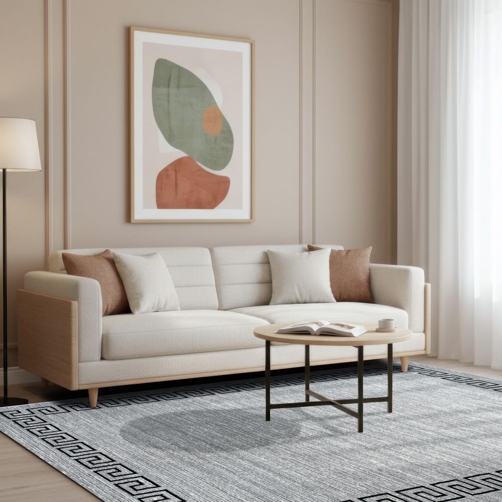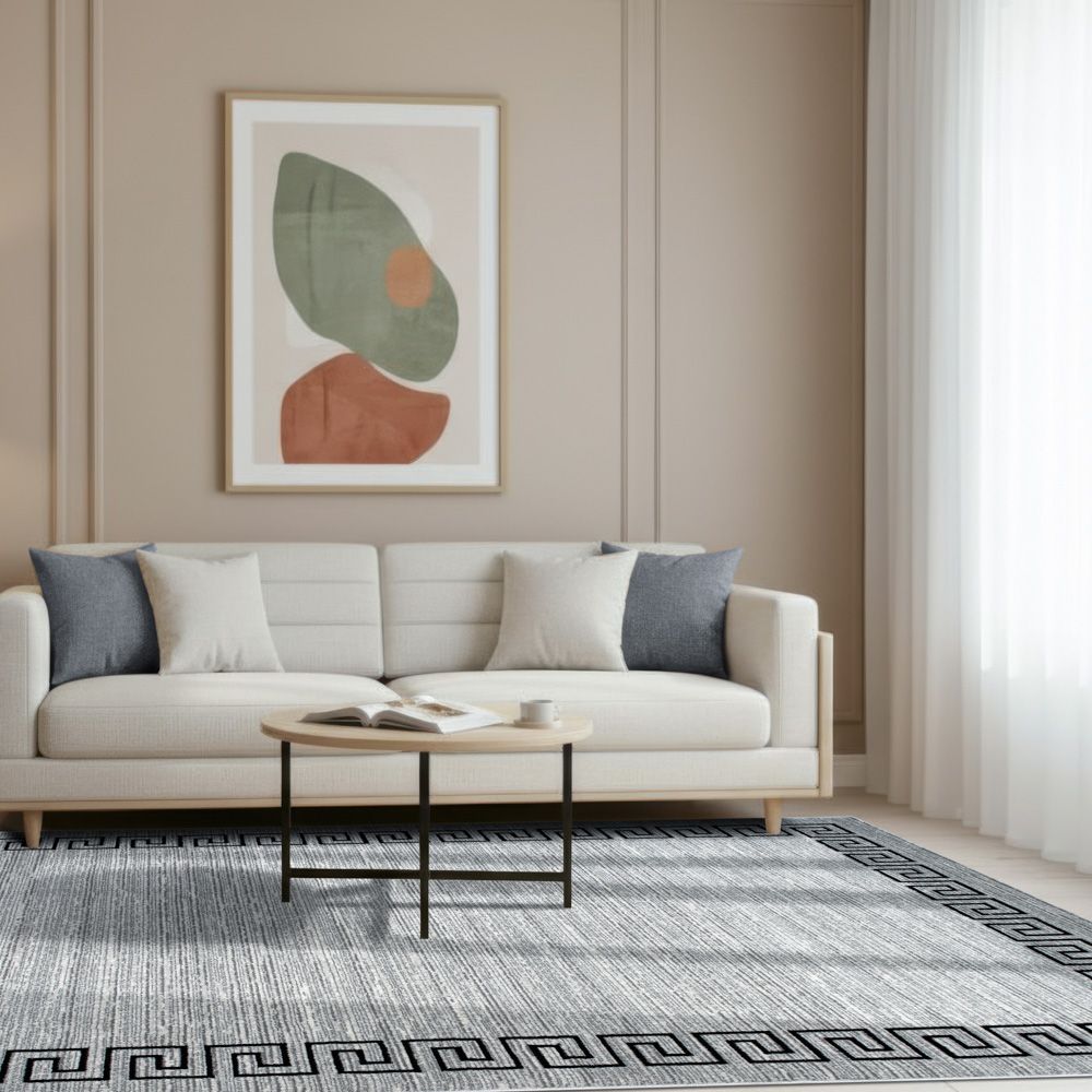 Airing and vacuuming will help to eliminate the smell that Rug can have when its new.