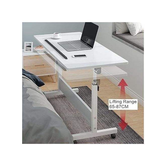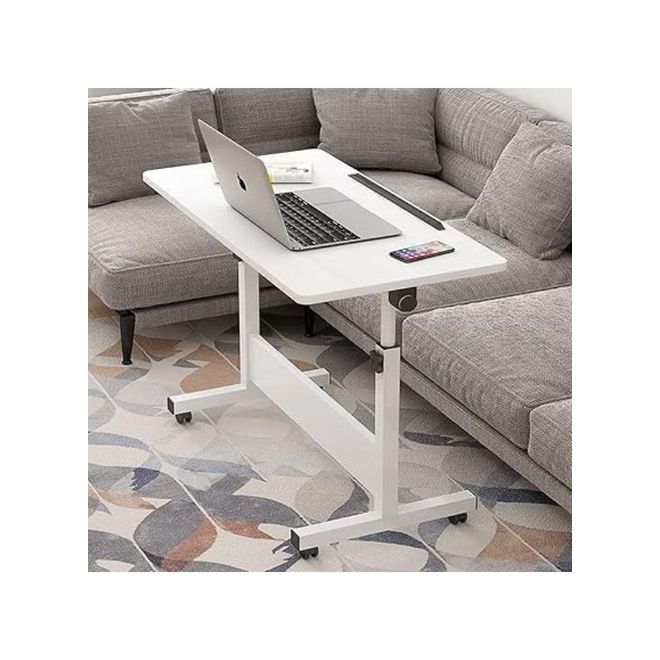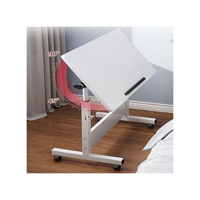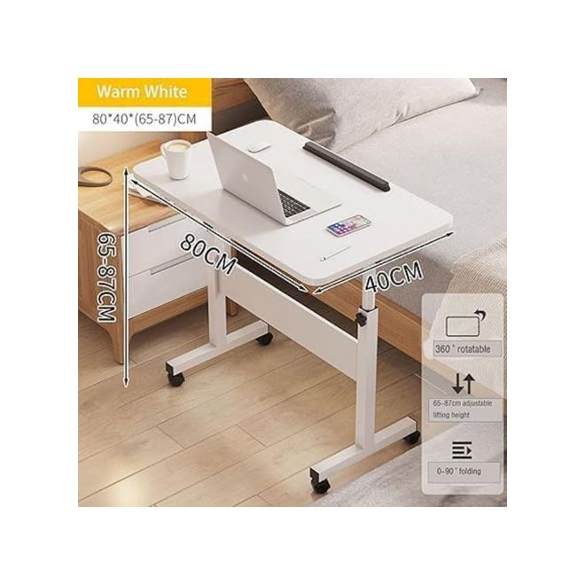 Harmony Home Mobile Standing Desk, 80x40x87 cm, Height Adjustable Foldable Laptop Desk with Lockable Wheels, Multifunctional Side Table for Bedroom, Office & Hospital, Warm White