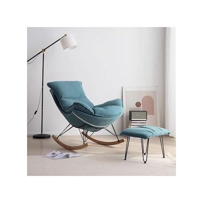 Harmony Home Rocking Chair, 95 x 68 x 82 cm, Retro-Style Fabric Rocker with Padded Seat, Metal & Wood Legs, Modern Armchair for Living Room, Bedroom & Office (Blue)
