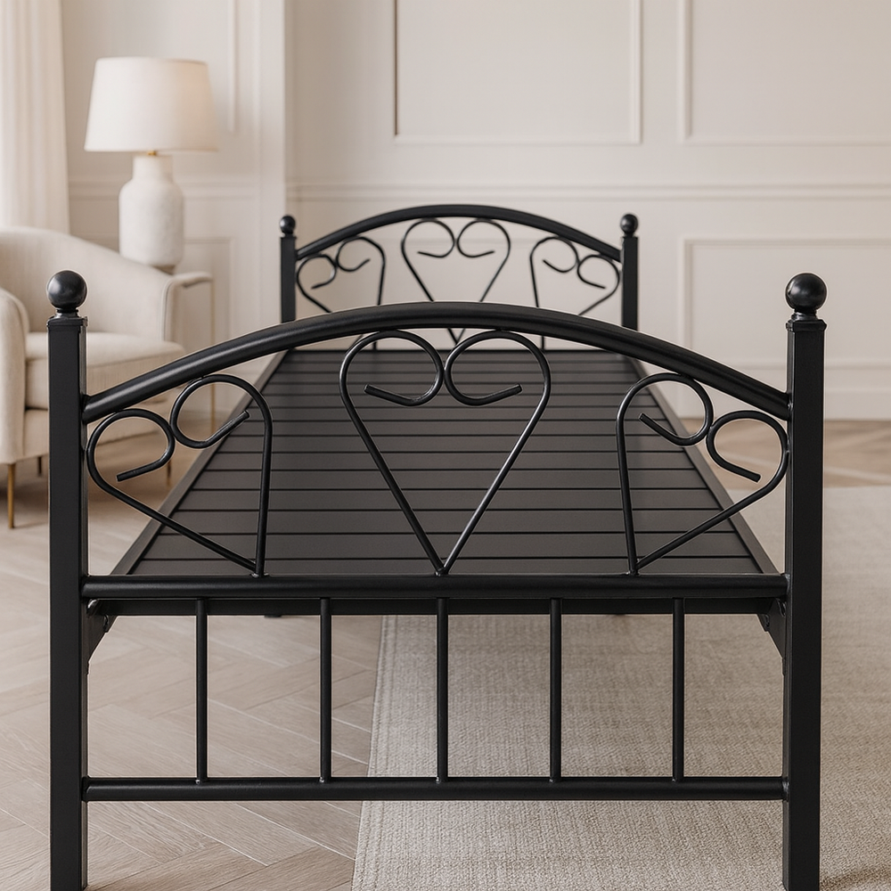 Heavy Duty Single Metal Steel Bed with Medicated Mattress Dimension 90x190 CM Black