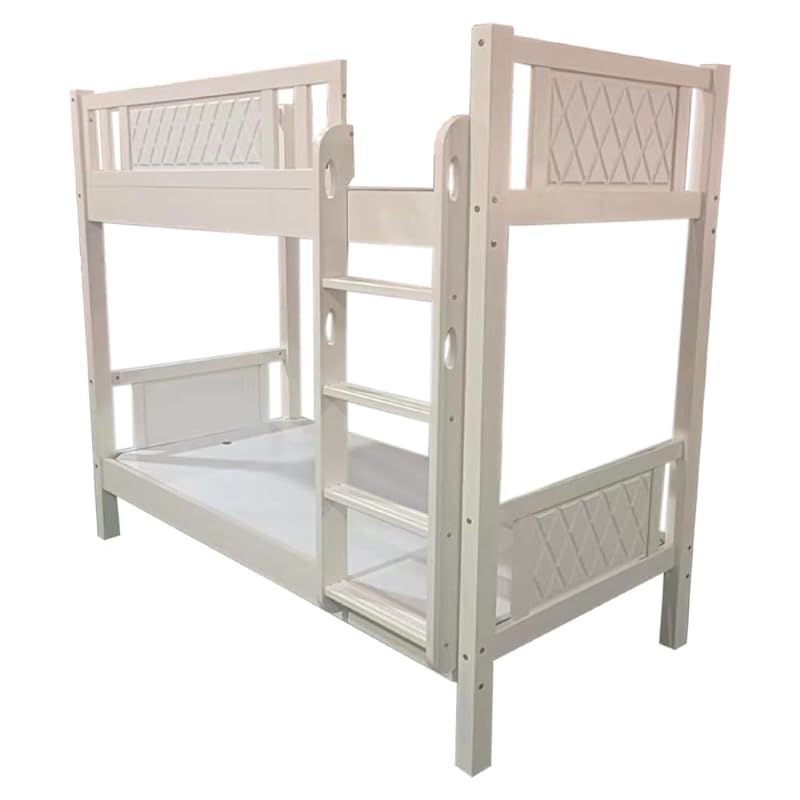 Heavy Duty Wooden Bunk Bed With Ladder for Kids, Teens, Bedroom, Guest Room Furniture, Solid Wooden Bedframe, Full-Length Guardrail Color (White)