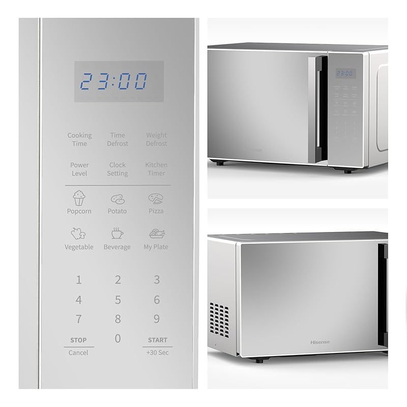 LED Display - The blue LED screen inherited the Hisense appliance global design, which is easy to read and operate. It comes with a cooking timer function and shows the time when the microwave oven is not working.
