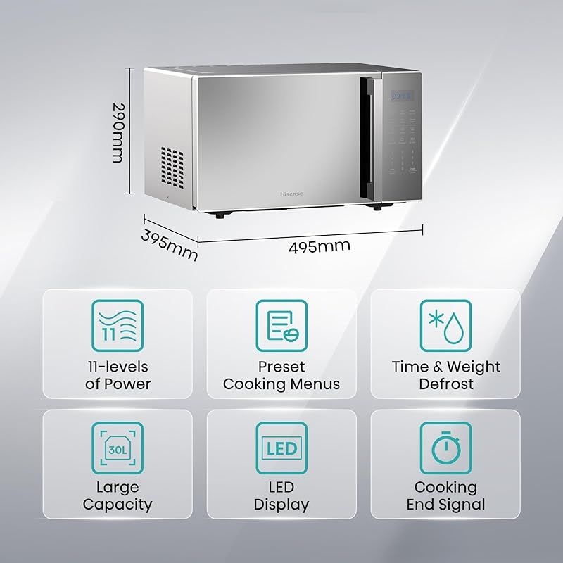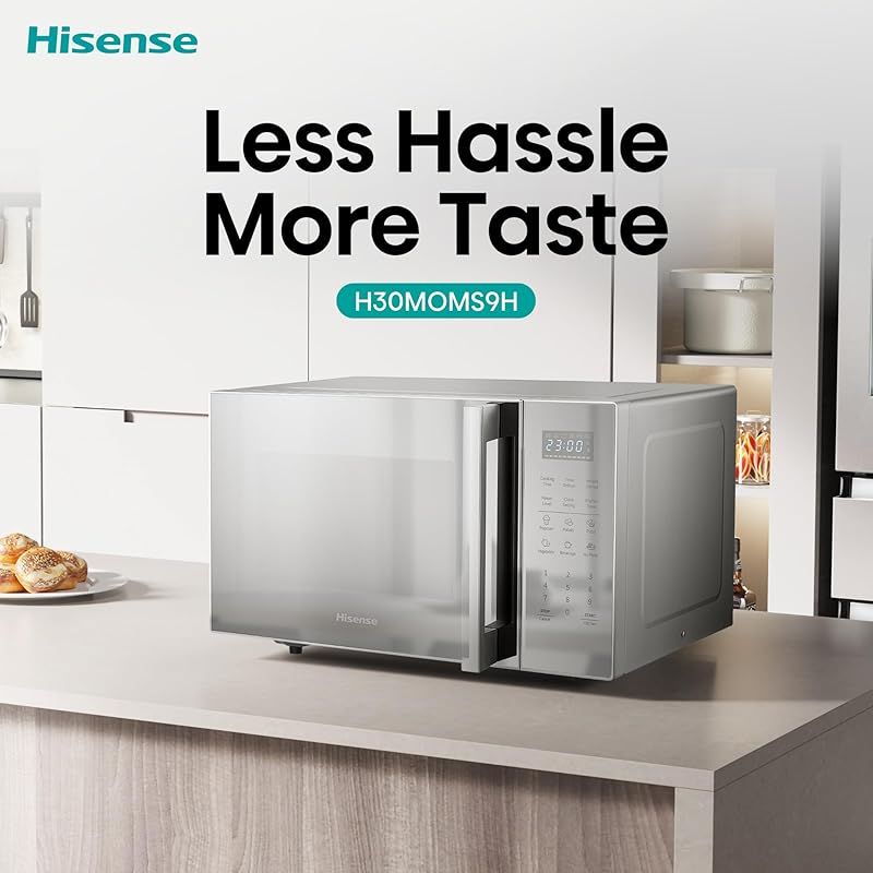 Hisense 30L Microwave Oven, 11-levels of Power, Preset Programmes, Time & Weight Defrost, LED Display, Cooking End Signal, Large Capacity, H30MOMS9H
