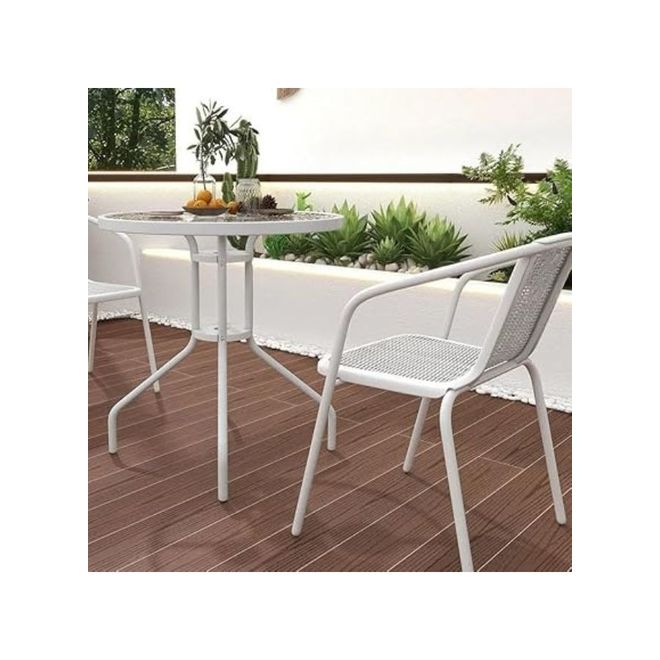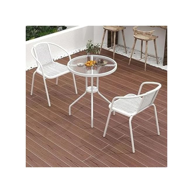 Home Mart 3-Piece Outdoor Dining Set is the perfect choice for compact outdoor spaces, offering both elegance and functionality. Designed with a durable poly rattan construction in a sophisticated white finish, this stylish set blends seamlessly into any balcony, patio, terrace, or small garden.