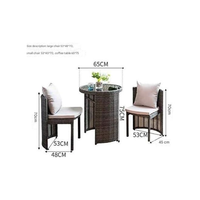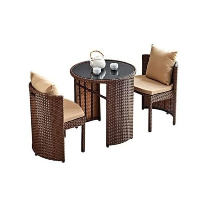 Upgrade your outdoor relaxation with the Home Mart 3-Piece Rattan Patio Furniture Set, designed for comfort, style, and durability. This elegant brown rattan set includes two cushioned chairs and a sleek glass-top table, making it an ideal addition to balconies, patios, terraces, and gardens.