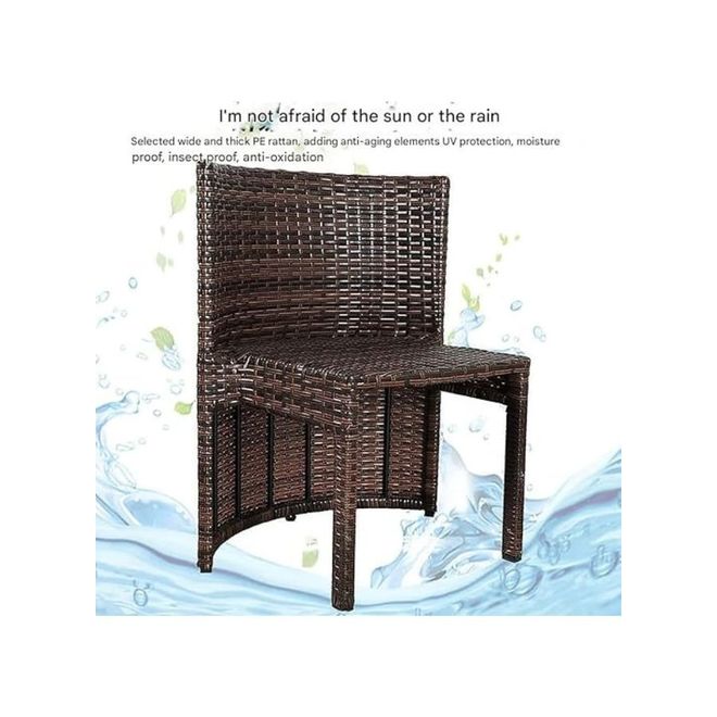 Designed for small spaces, this compact set offers a cozy and space-saving seating arrangement. With its sturdy steel frame and high-quality construction, it is built to withstand sun, rain, and outdoor elements, ensuring year-round use.