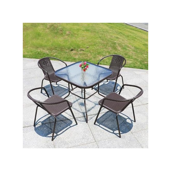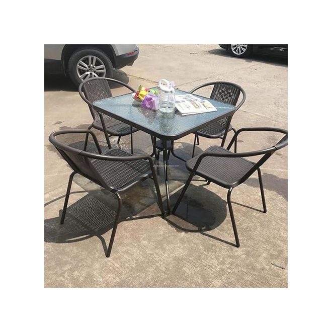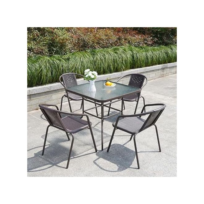 Transform your outdoor space with the Home Mart 5-Piece Garden Dining Set, a stylish and functional addition to your patio, balcony, or garden. Designed for durability and elegance, this set is made from high-quality poly rattan with a sturdy steel frame, ensuring stability and long-lasting use. The sleek glass tabletop enhances its luxurious appearance while providing an easy-to-clean surface.