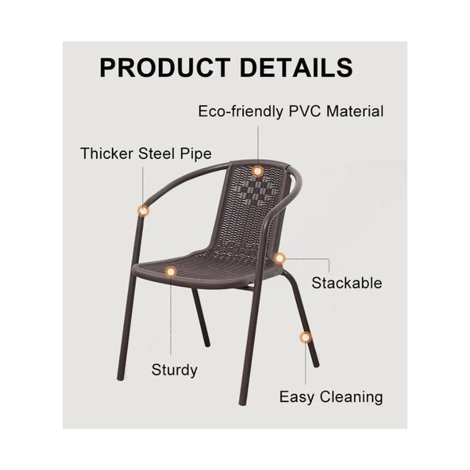 For prolonged durability, we recommend covering the set during harsh weather conditions such as rain, snow, and frost. This weather-resistant and space-efficient dining set is ideal for compact outdoor areas without compromising on comfort and style.
