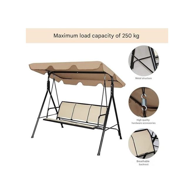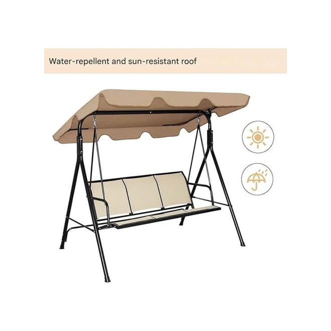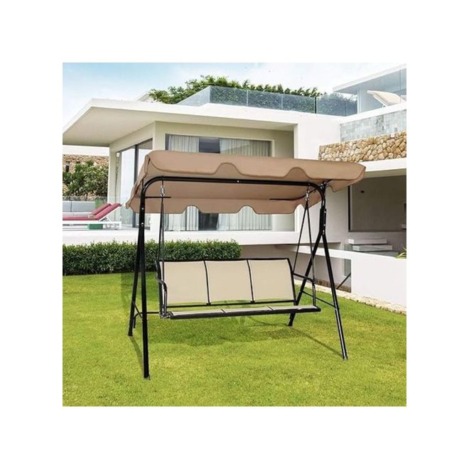 Home Mart Outdoor 3-Seater Canopy Swing Chair, 109x174x153 cm, Adjustable Steel Frame, Weather-Resistant Beige Fabric for Patio, Balcony, and Beach