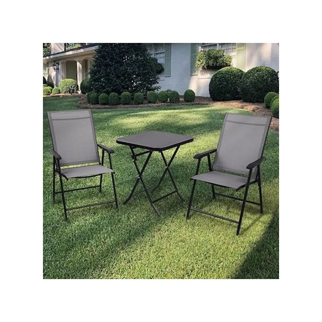 Home Mart Stackable Patio Chairs Set, 59x72x93 cm, Outdoor Dining Chairs with Armrests & Breathable Fabric, Powder-Coated Steel Frame, Modern Grey