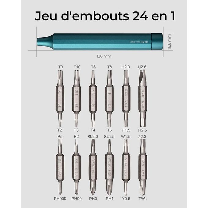 HOTO Precision Mechanic Screwdriver Set, 24 in 1 Precision Mini Screwdriver Set with Magnetic S2 Steel Bits, Portable Repair Kit, Ideal for Electronics, Glasses and Watch, Green