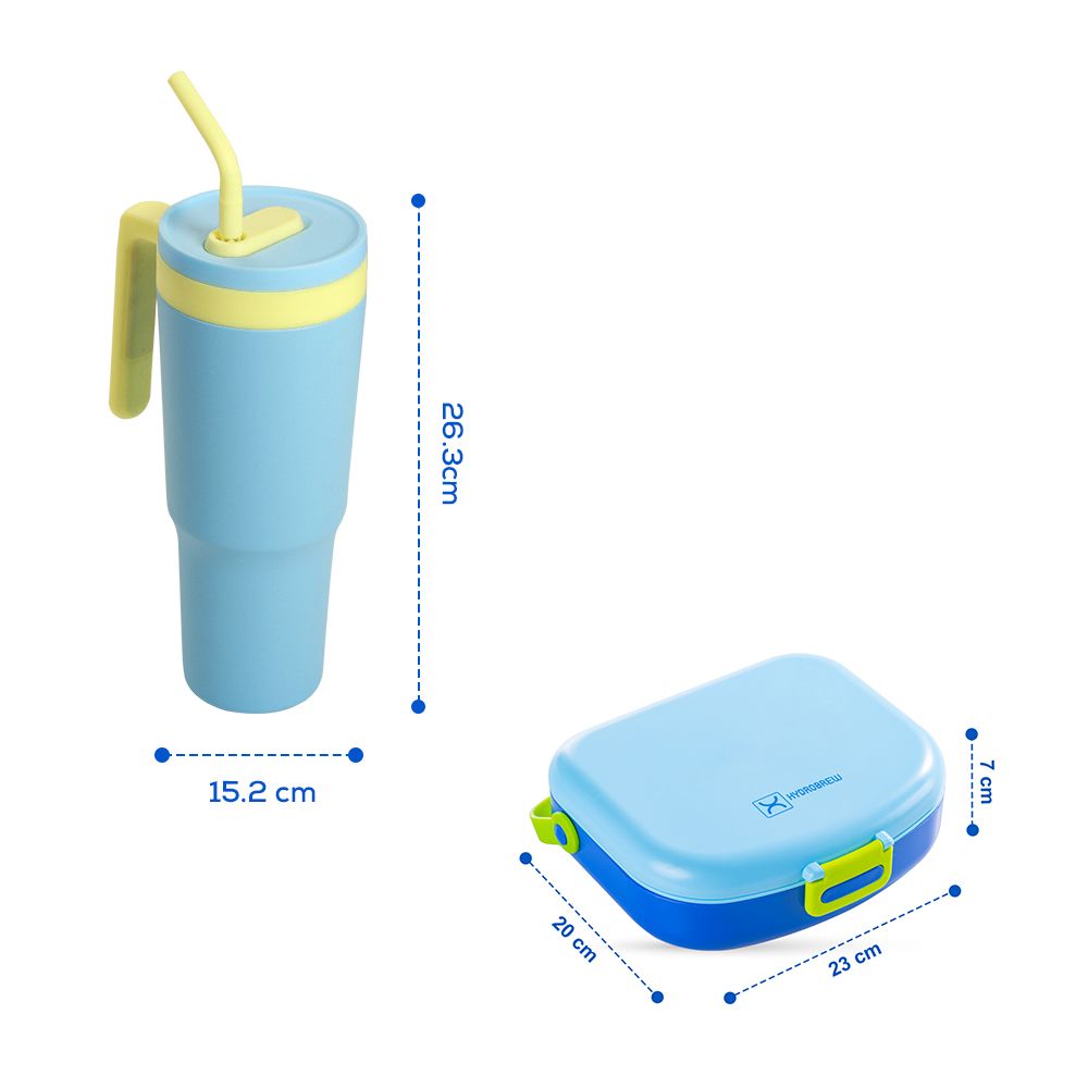 Hydrobrew 4 Compartment Bento Lunch Box w/ Steel Water Tumbler Bottle & Spoon & Fork Set - Cobalt