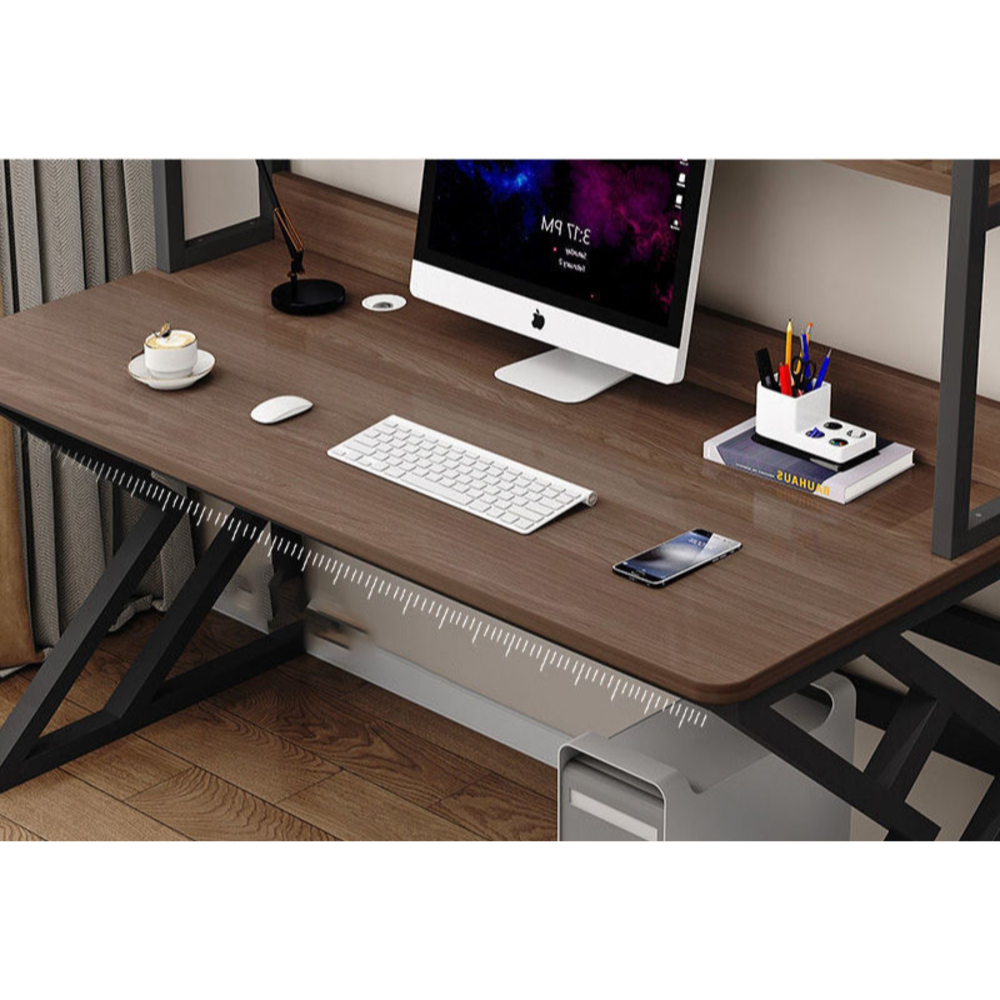 Industrial Computer Desk, Metal and Wood Home Office Desk with Storage Shelves - Brown