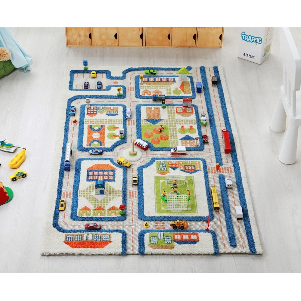 IVI 3D Play Carpet, Traffic Blue Design - Medium Size (150cm x 100cm)