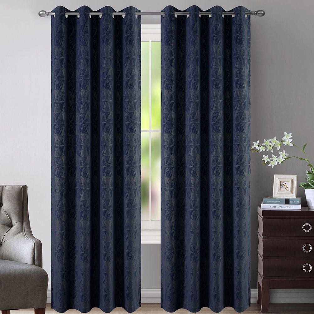 Jade Triangle Set of 2 Printed Anti- Bacterial Curtains 45-Navy 135x260 cm