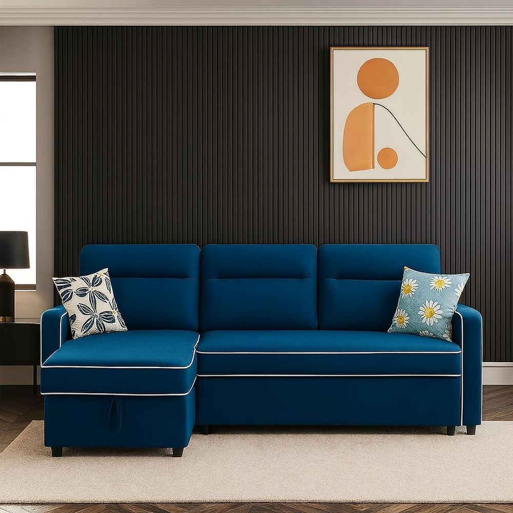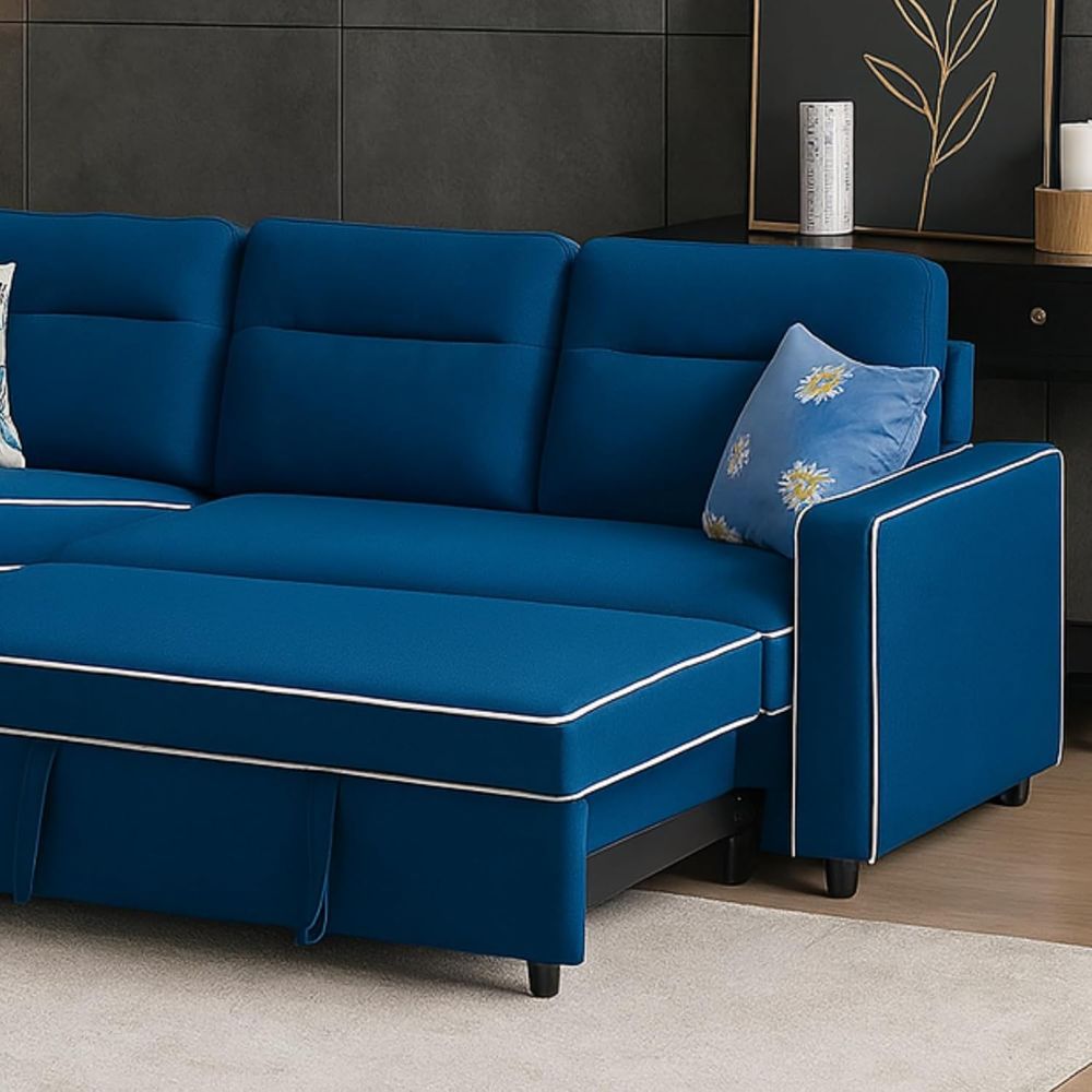 Maximize your space without compromising on comfort or style with this modern L-shaped sofa cum bed