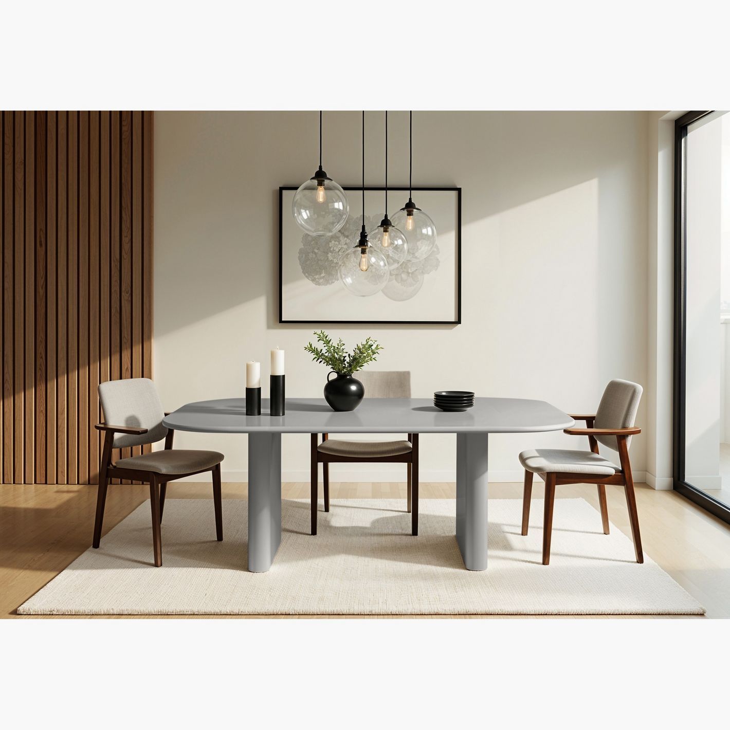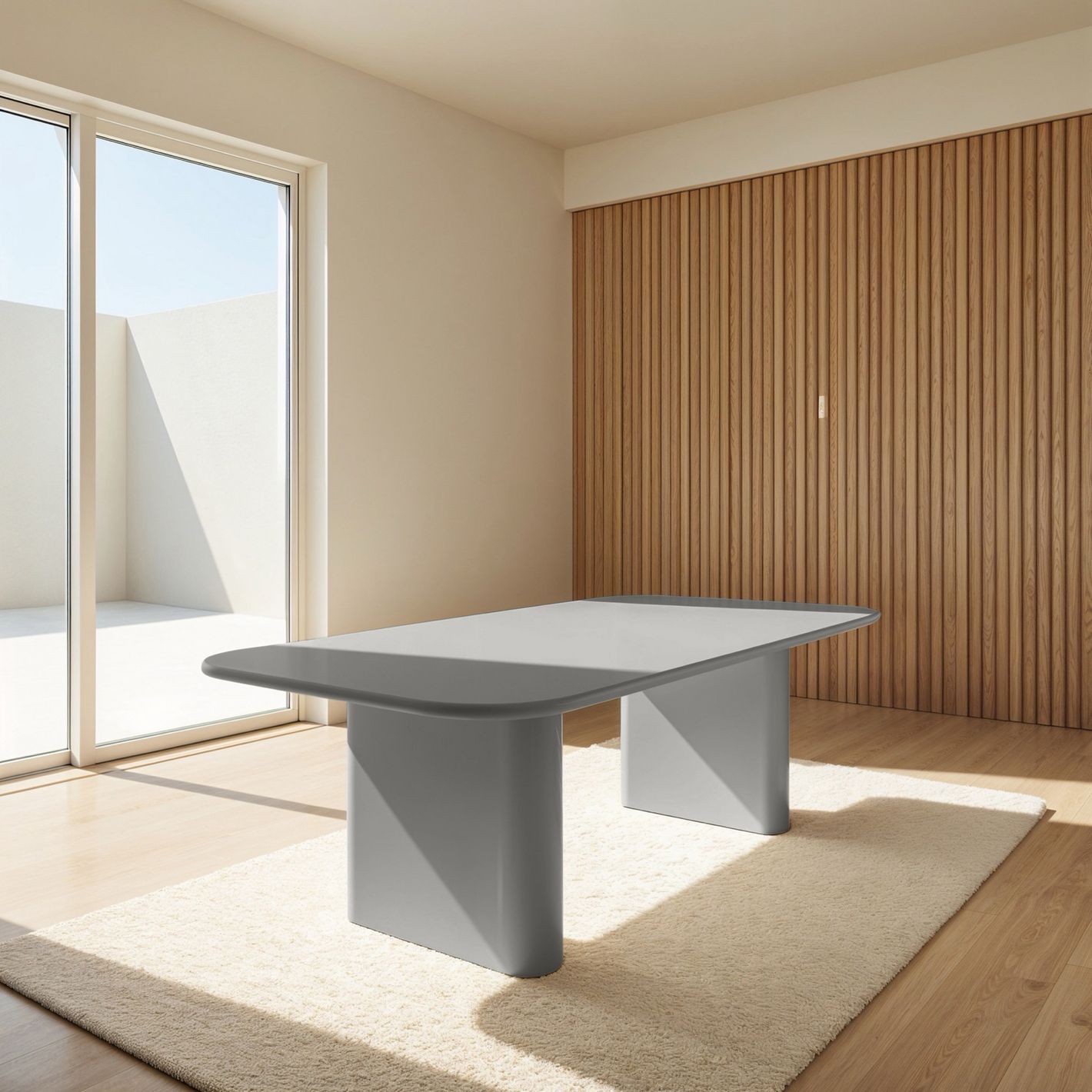 Its smoothly rounded rectangular top, paired with a unique dual-leg base, adds contemporary charm while ensuring excellent stability