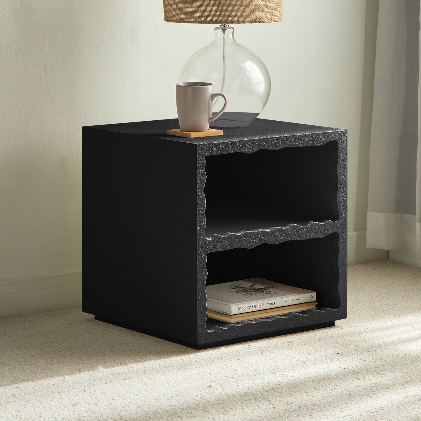 Cloudy Side Table – Luxury Modern Square Accent Table with Shelf for Stylish Living Room & Bedroom (Black)