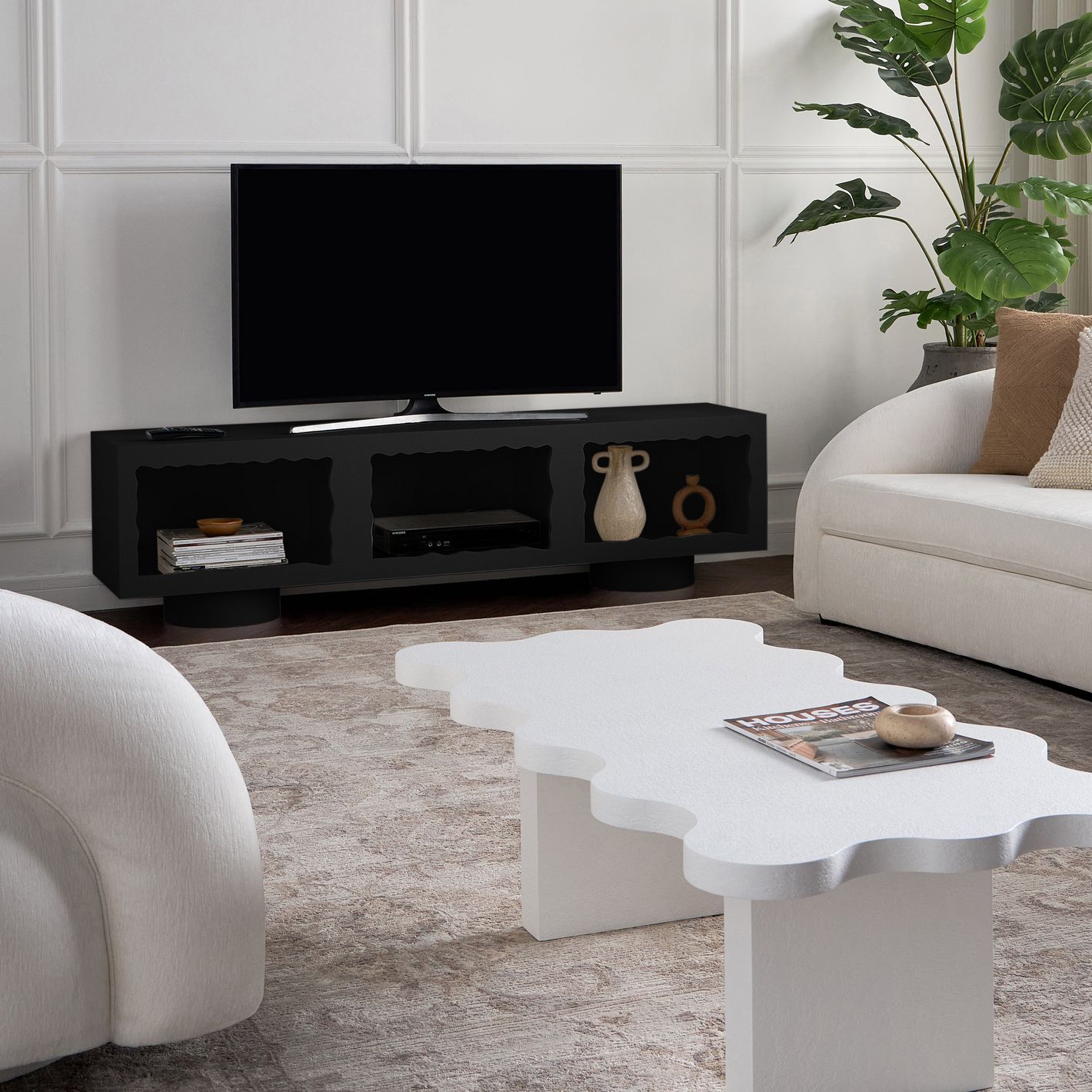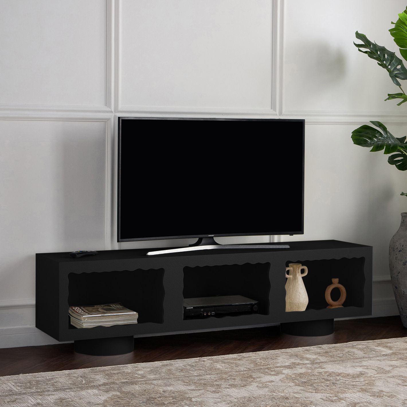Cloudy TV Unit – Modern Luxury TV Stand with Wave Design & Spacious Storage for Stylish Living Rooms (Black)