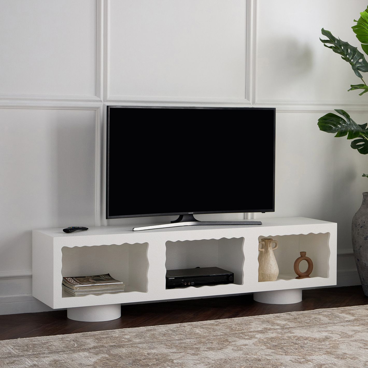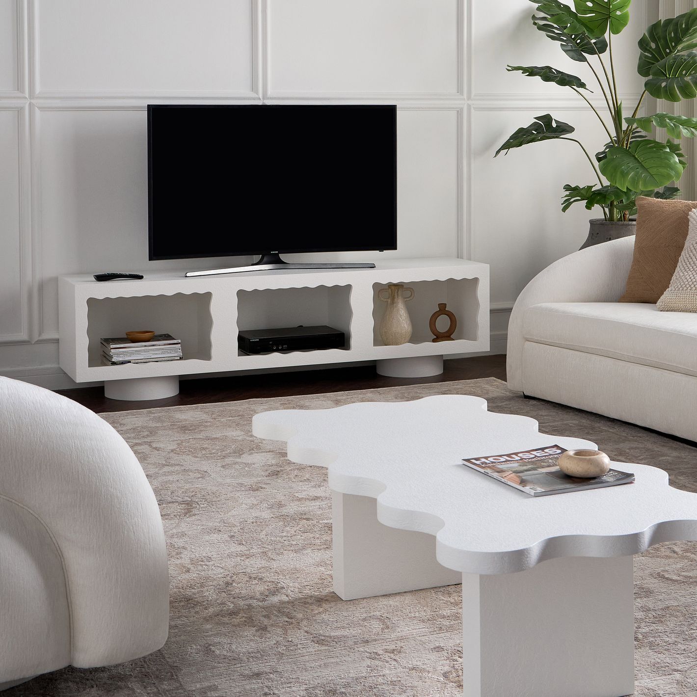 Cloudy TV Unit – Modern Luxury TV Stand with Wave Design & Spacious Storage for Stylish Living Rooms (White)