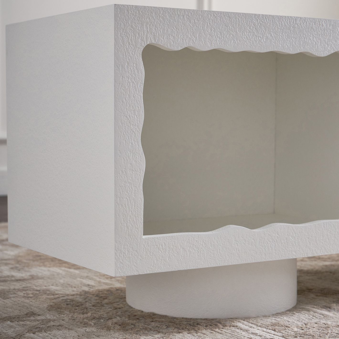 Crafted from durable engineered wood, this contemporary console showcases a unique wave-inspired textured design, making it a true focal point in any living room