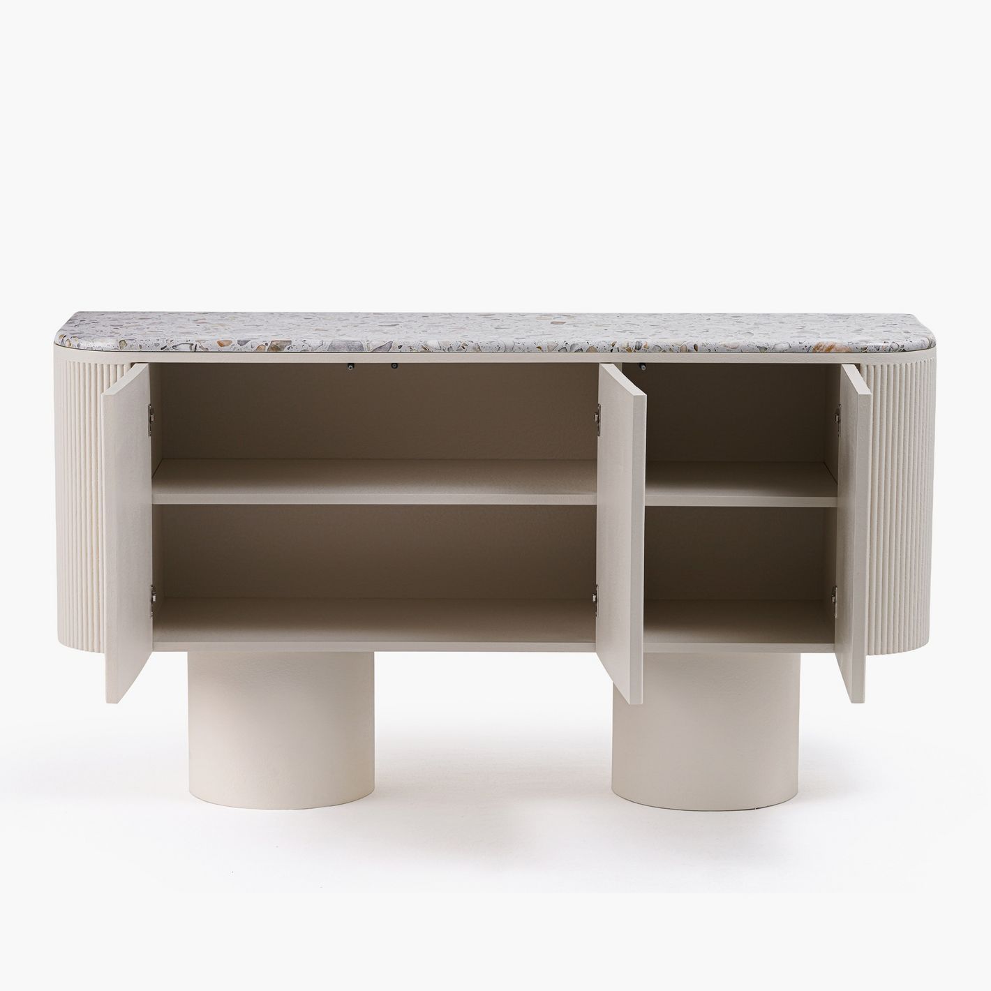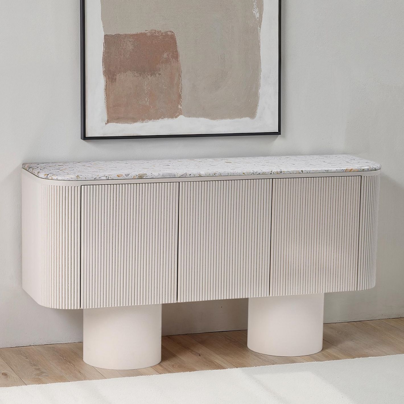 Dune Terrazzo Top Buffet – Premium Modern Sideboard Cabinet with Fluted Doors & Ample Storage