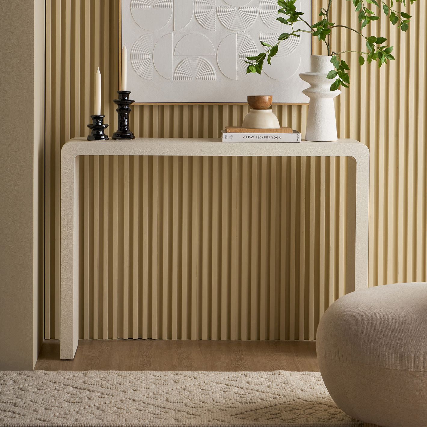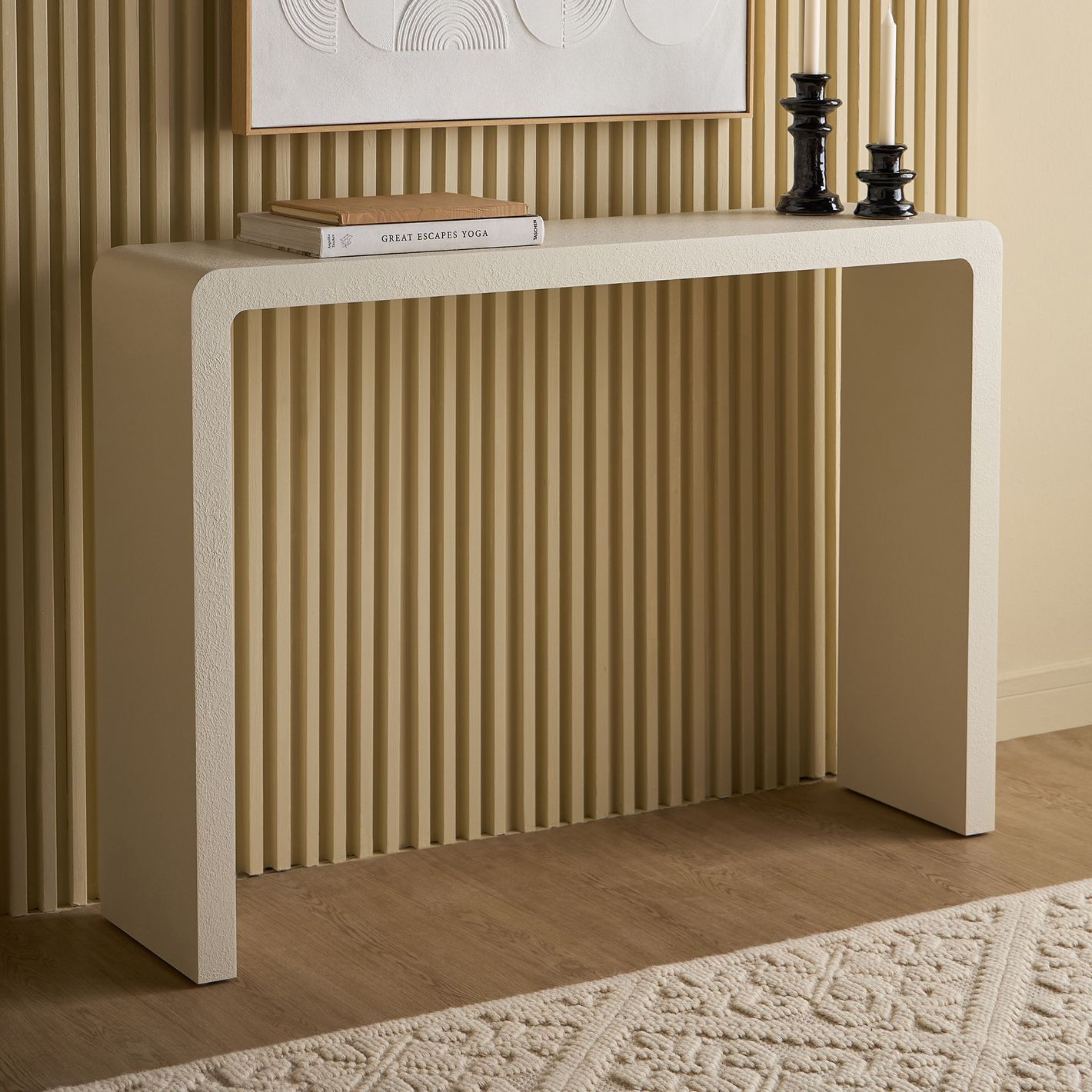 Built from durable MDF with a refined plaster finish, this lightweight yet sturdy console offers lasting quality and style