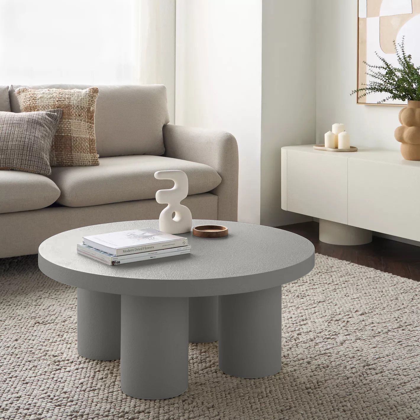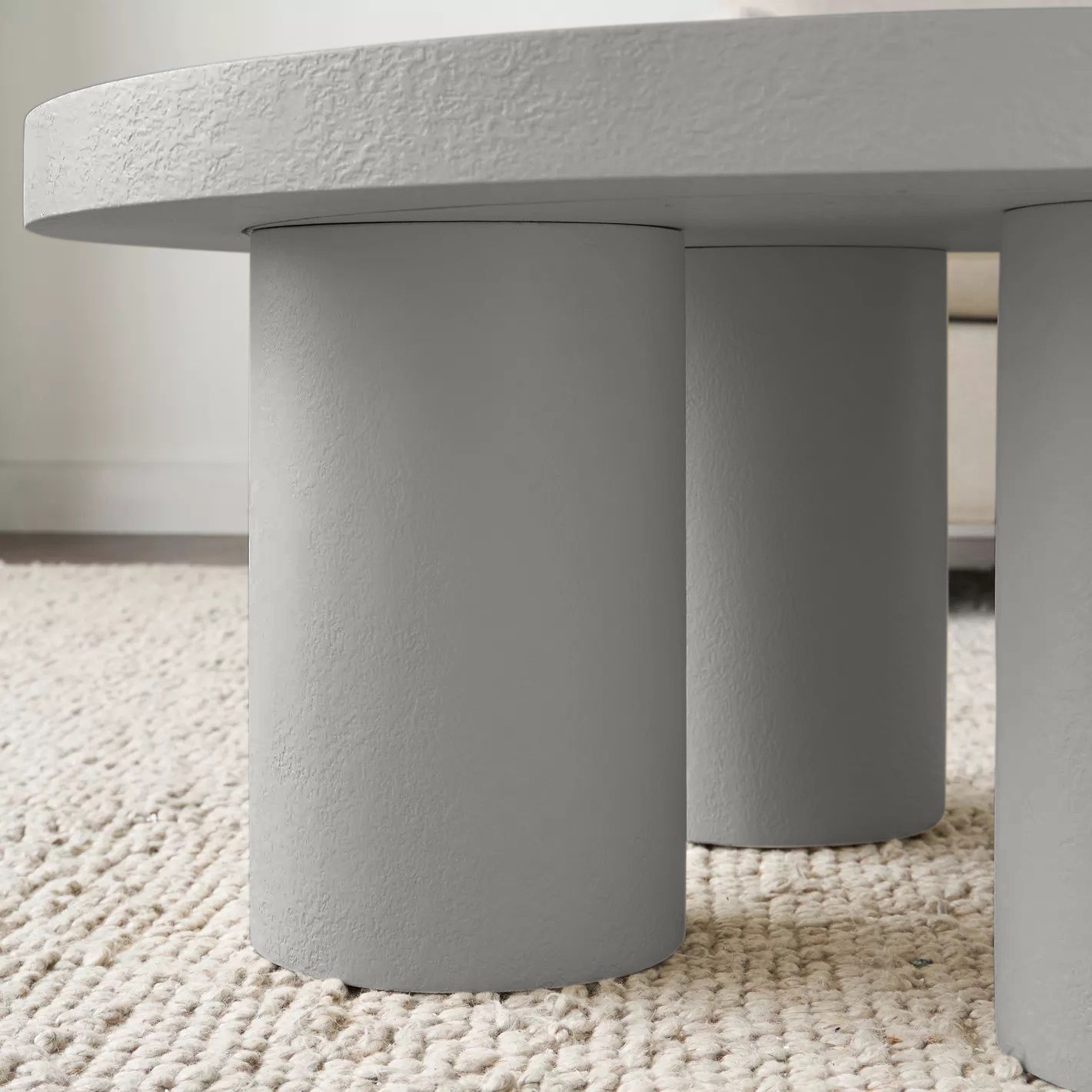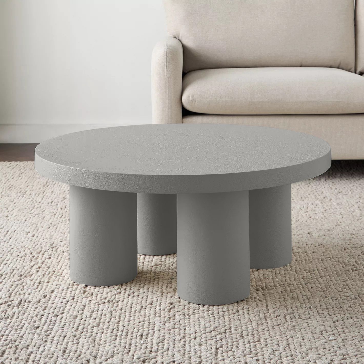 Ember Coffee Table – Modern Round Center Table with Textured Finish & Cylindrical Legs