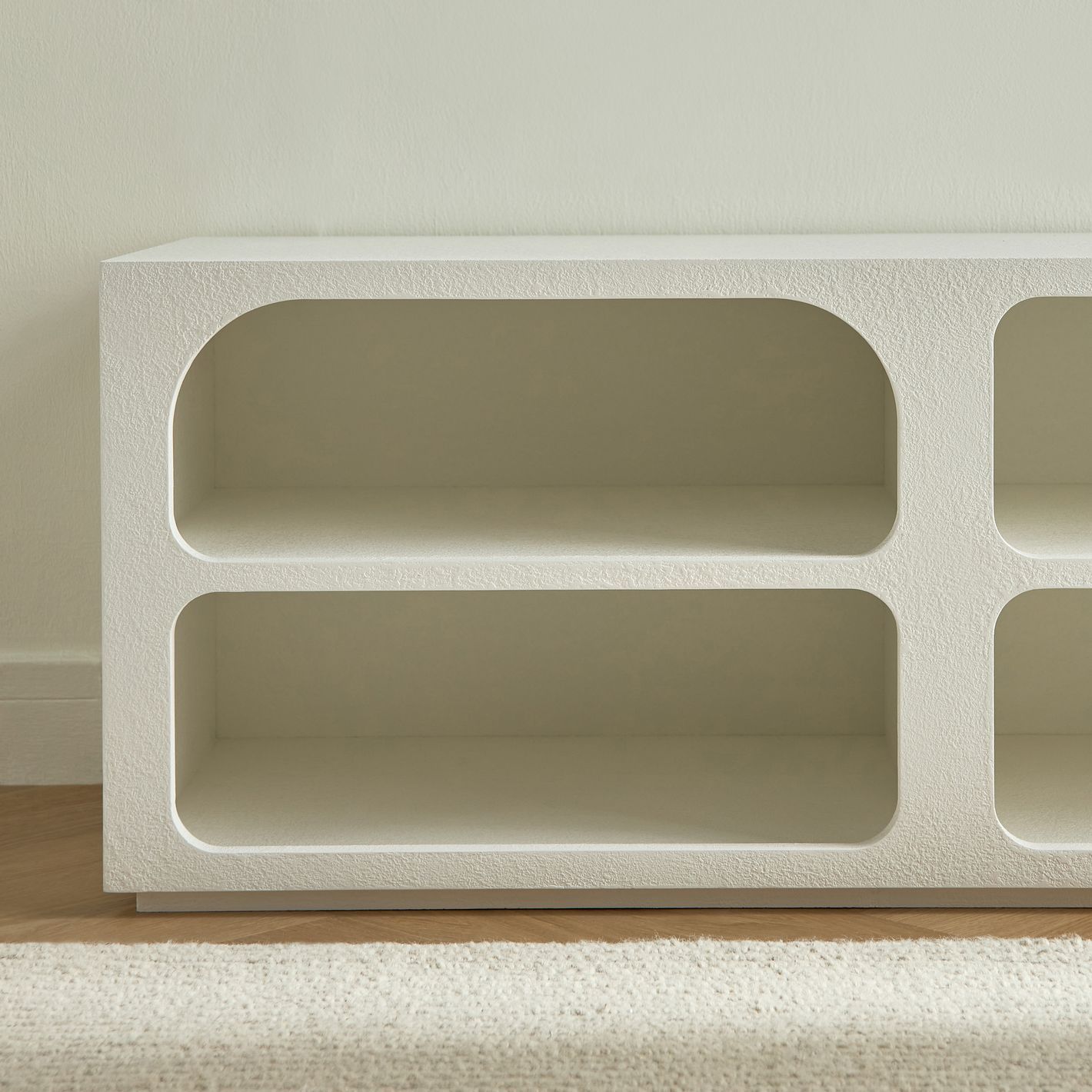 Crafted from premium engineered wood, this rectangular media unit combines durability with a sleek, homestead-inspired design