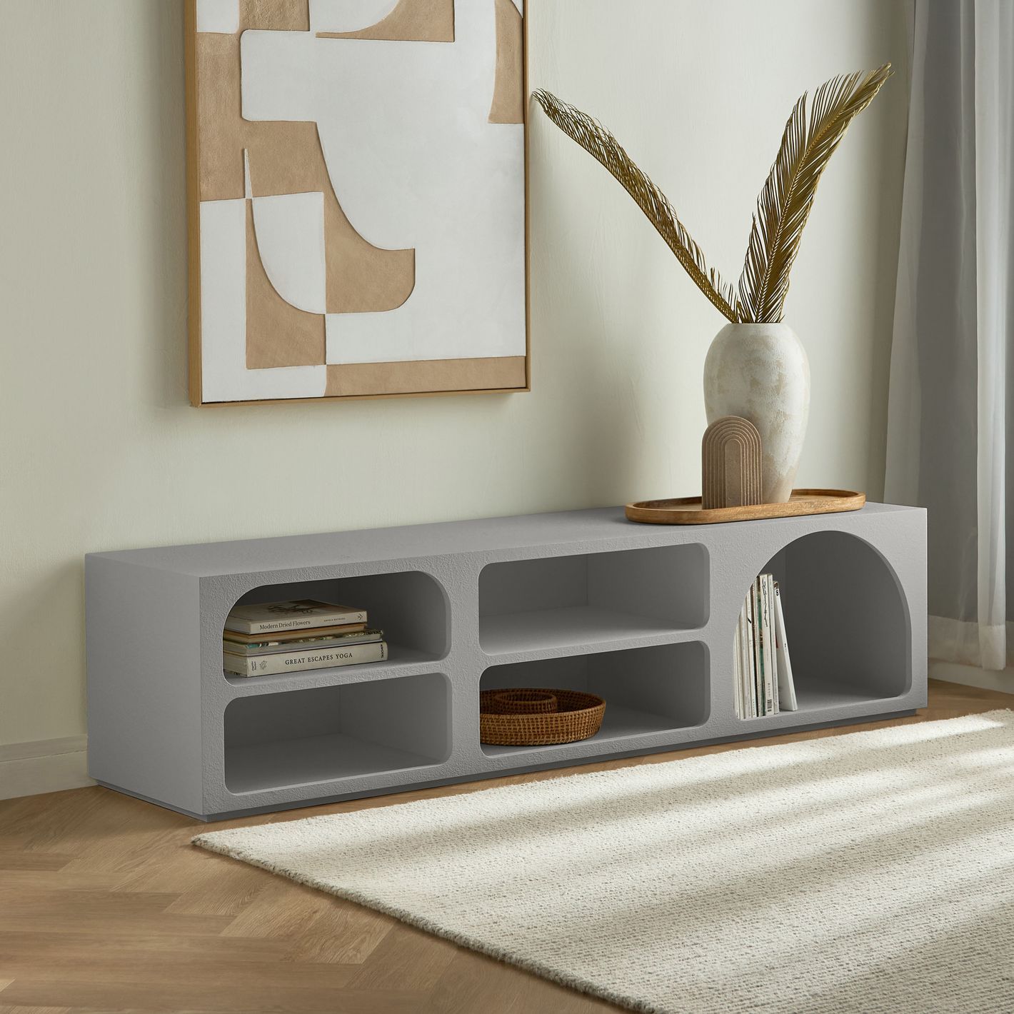 Float TV Unit – Modern Luxury TV Stand with Shelves & Stylish Storage for Contemporary Living Rooms (Grey)