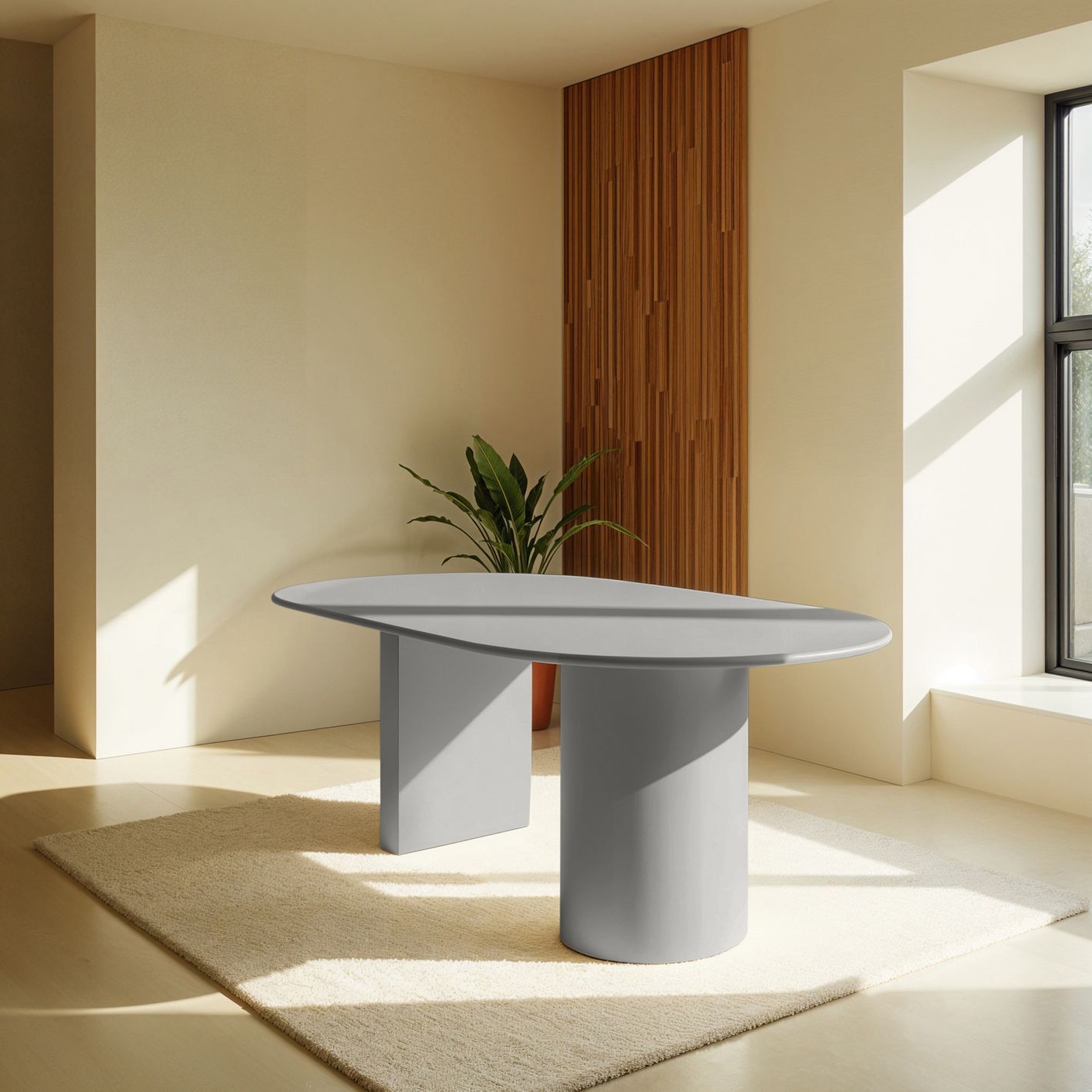 Half Moon 8-Seater Dining Table – Luxury Large Dining Table with Modern Organic Design (Grey)