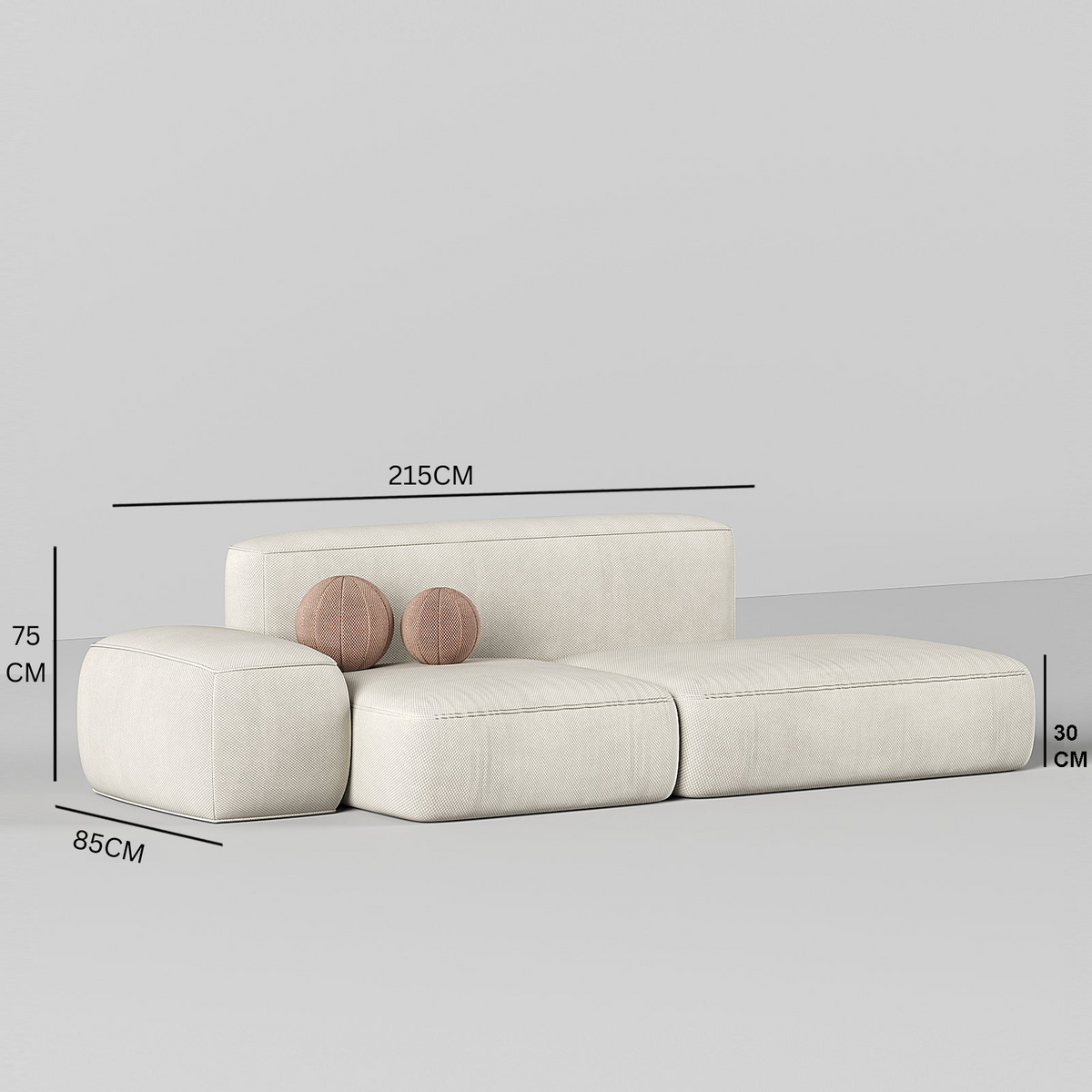 Upholstered in off-white premium faux leather, this chic sofa features a modular design with a detachable left or right arm, allowing flexibility to fit any space