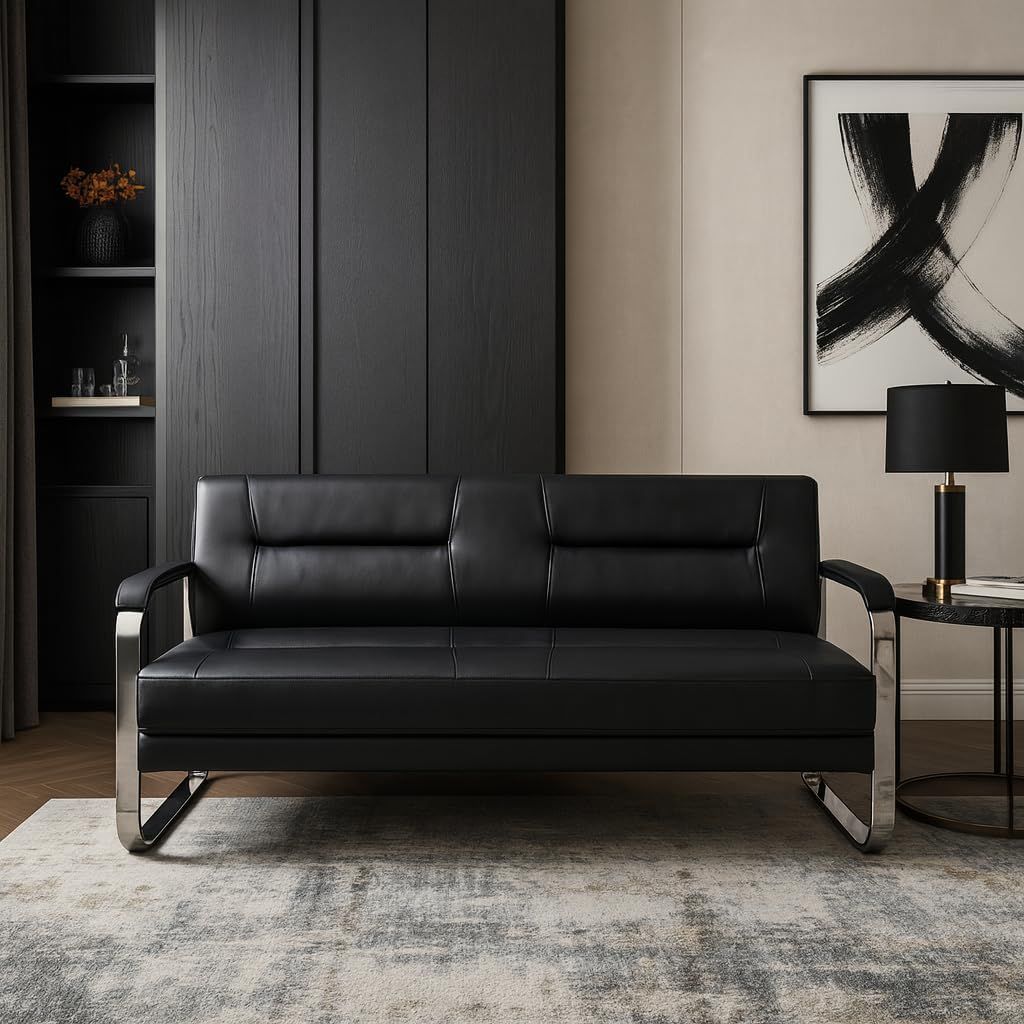 Luxury Faux Leather 5-Seater Sofa | Waterproof Breathable Sofa Set | PU Foam Protector & Comfort for Living Room, Home Furniture, Office, Apartment, Studio Room Sofa (Black)