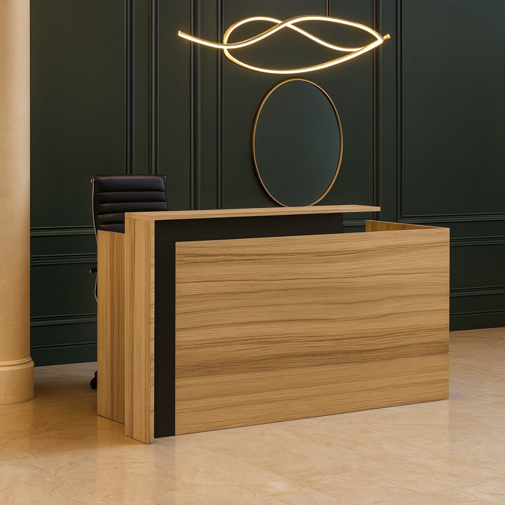 Luxury Front Desk | Elegant Office Counter Table | Space-Saving Reception Desk for Office, Hotels, Restaurants, Apartment Furniture (Brown)