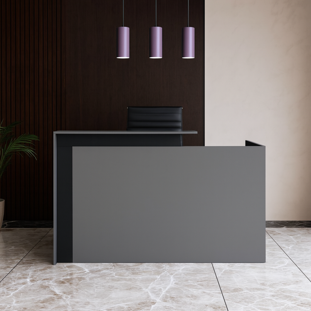 Luxury Front Desk | Elegant Office Counter Table | Space-Saving Reception Desk for Office, Hotels, Restaurants, Apartment Furniture (Grey)