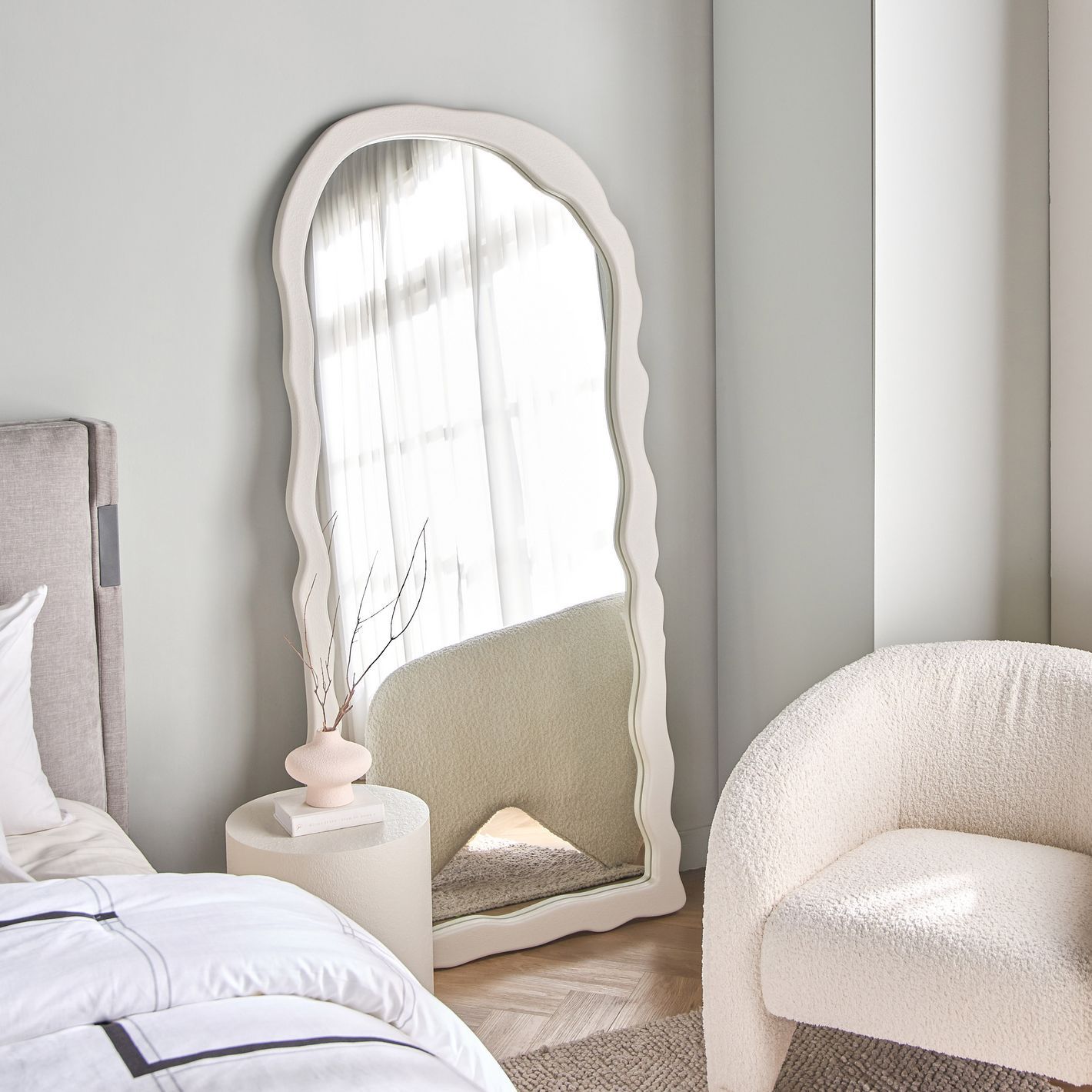 Luxury Ripple Leaner Mirror – Modern Decorative Arch Frame for Elegant Wall Décor (White)