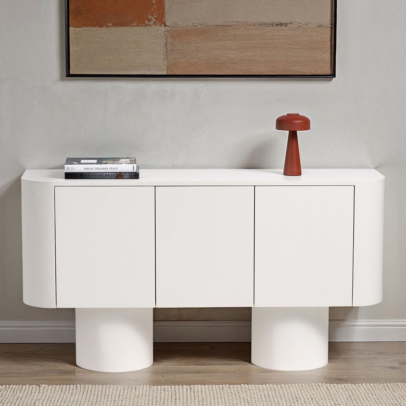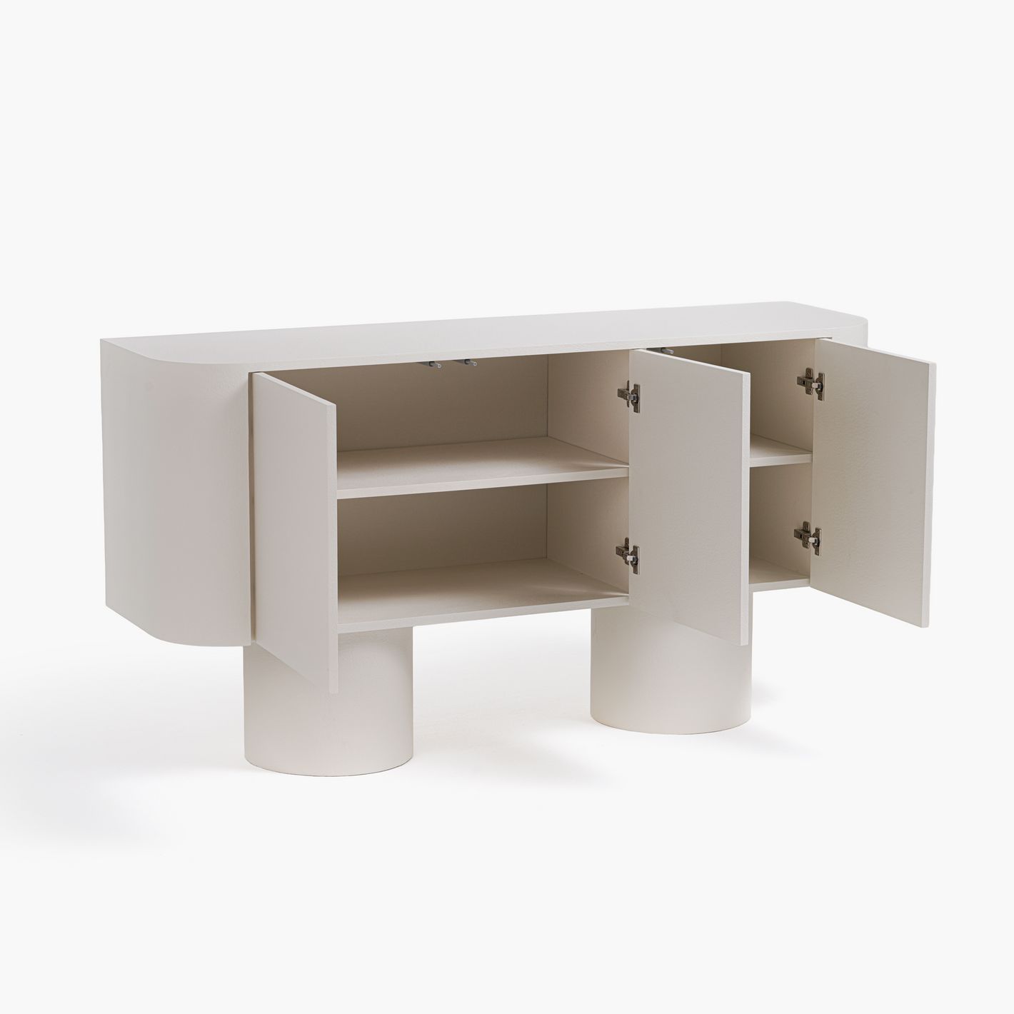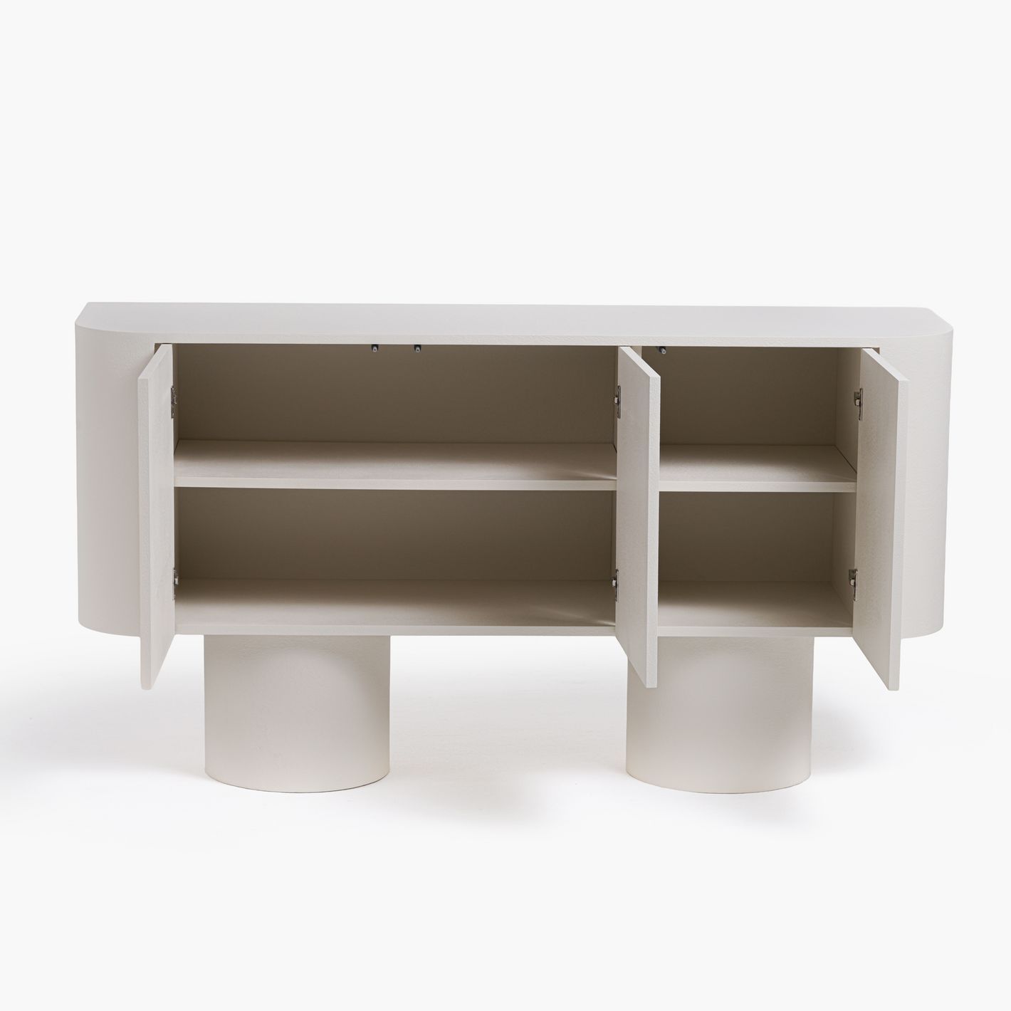 Crafted with smooth rounded edges and supported by sleek cylindrical legs, this sideboard creates a refined silhouette that complements any interior style