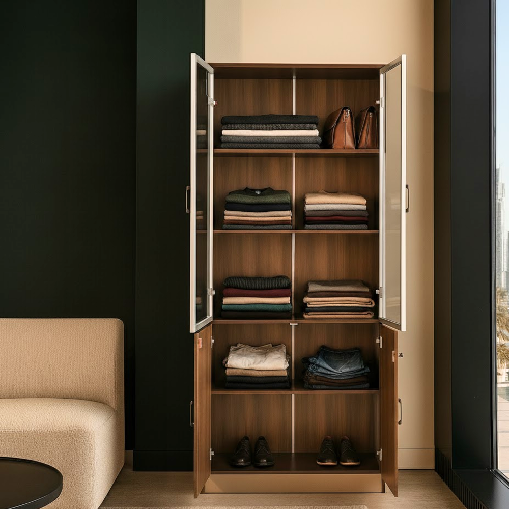 Transform your bedroom or office with the Karnak Luxury Wooden Wardrobe, designed for modern living and elegant organization