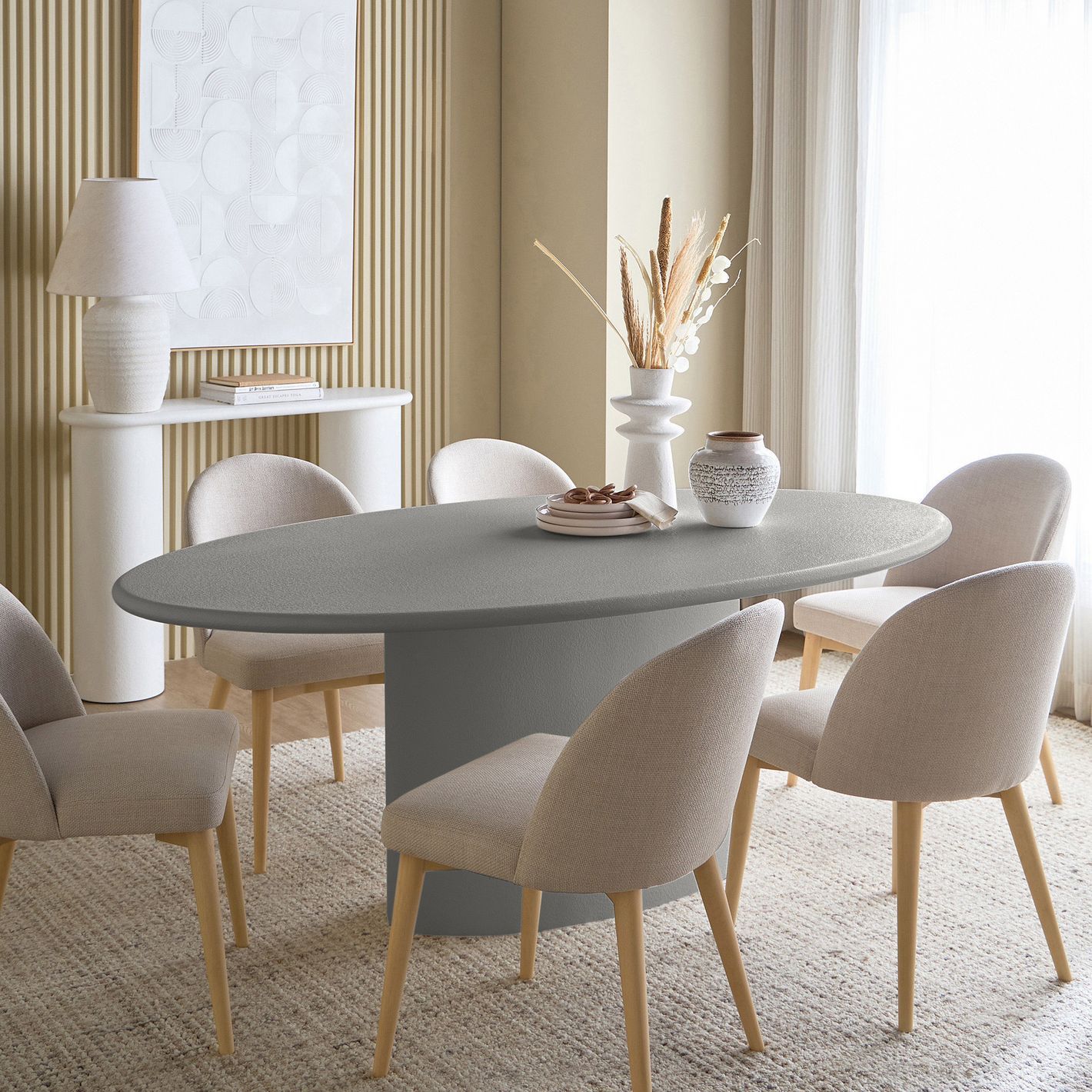 Pine 6-Seater Dining Table – Elegant Oval Dining Table with Pedestal Base for Modern Homes (Grey)