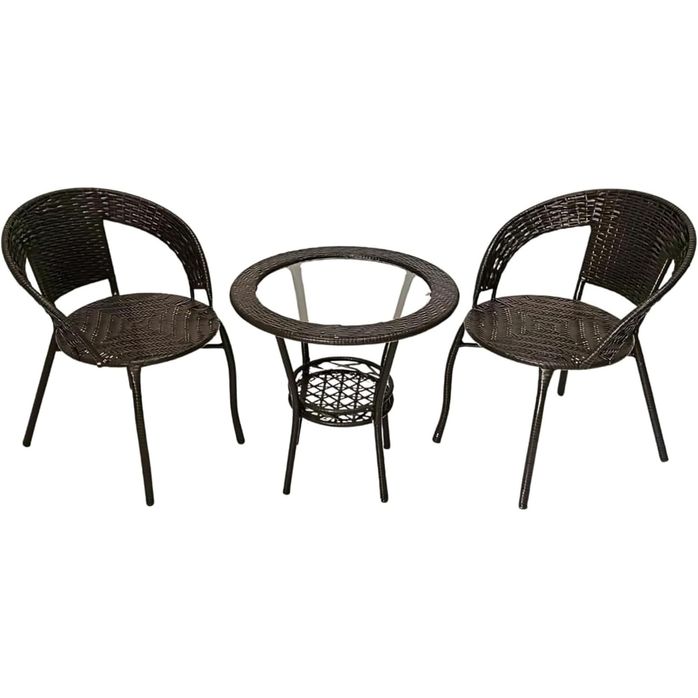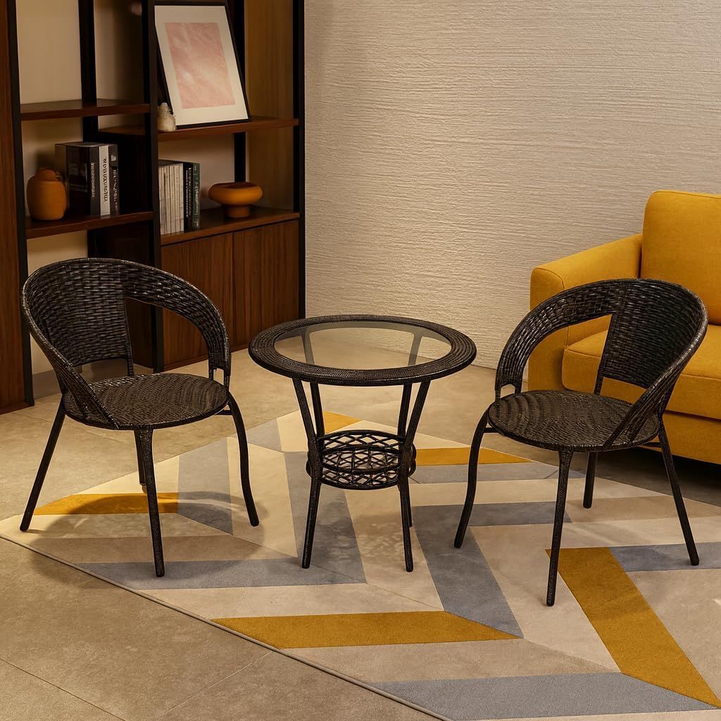Rattan Chair Set | Patio Seating Set with 1 Table & 2 Chairs | Durable Artificial Rattan Set for Outdoor & Indoor Use, Comfortable | Armchair for Garden & Pool-Side Furniture (Black)