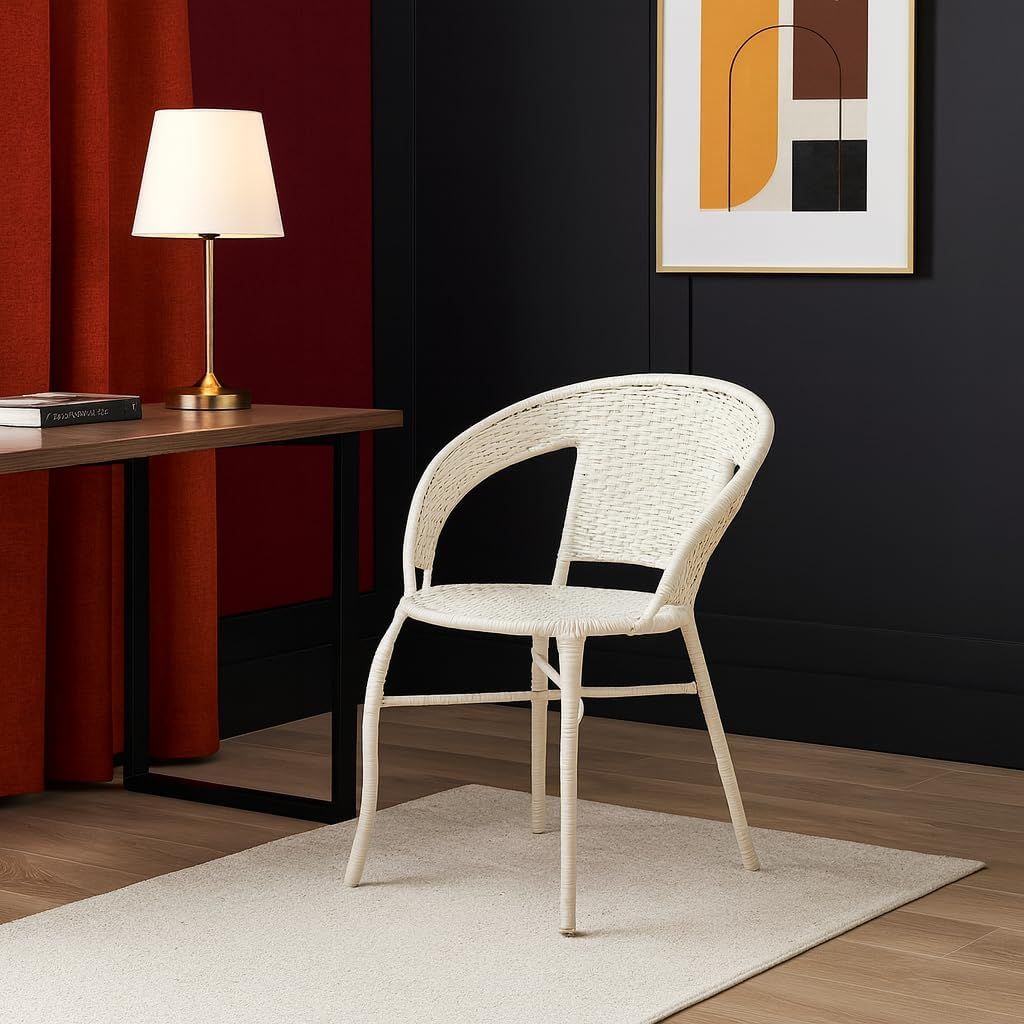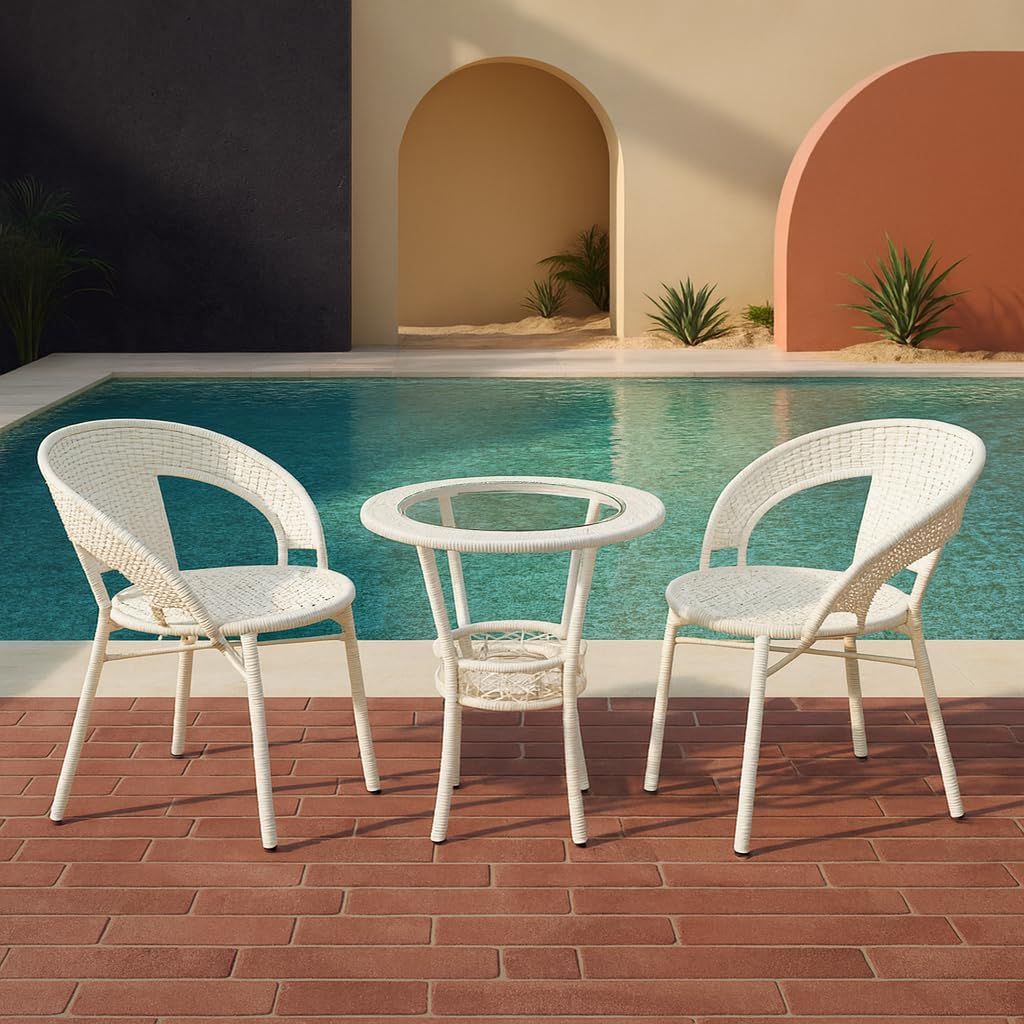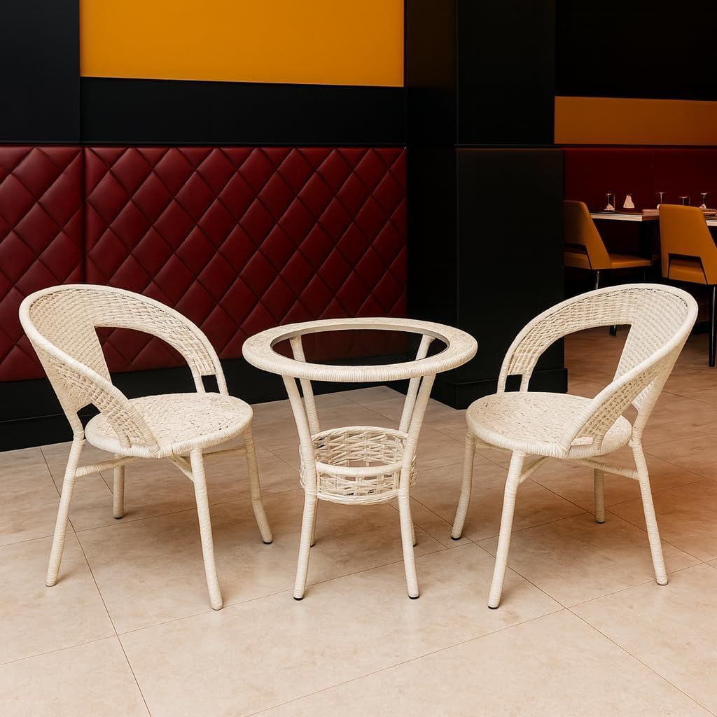 Rattan Chair Set | Patio Seating Set with 1 Table & 2 Chairs | Durable Artificial Rattan Set for Outdoor & Indoor Use, Comfortable | Armchair for Garden & Pool-Side Furniture (White)