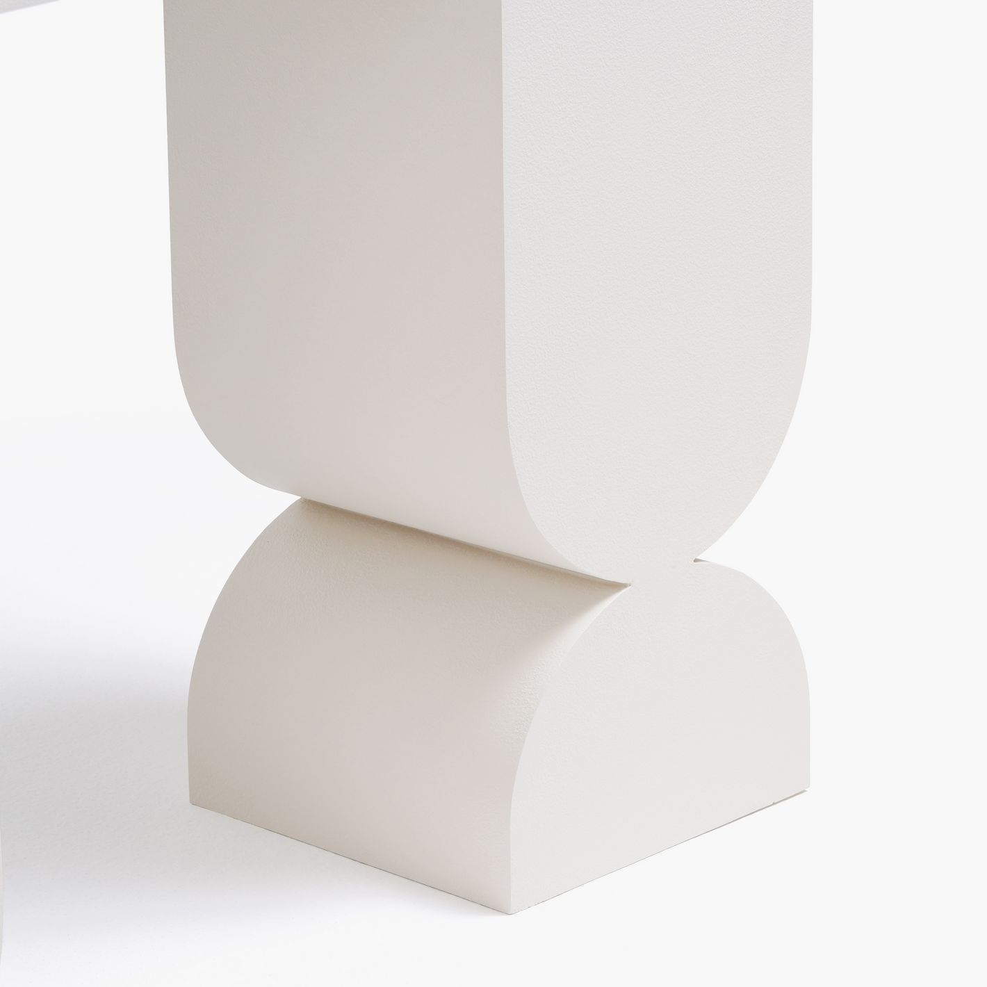 Crafted from engineered wood with a smooth plaster finish, it features a bold silhouette that balances curved volumes with clean lines, creating a gallery-like presence in any room