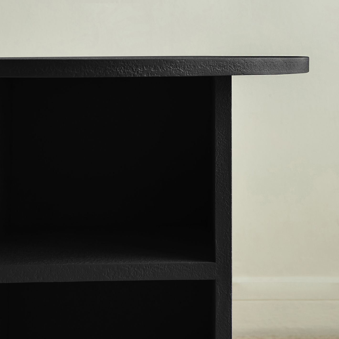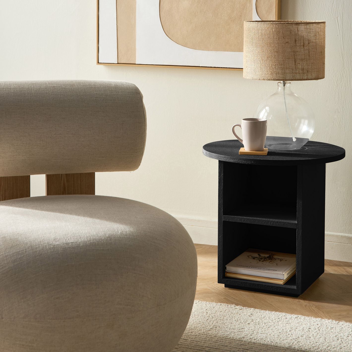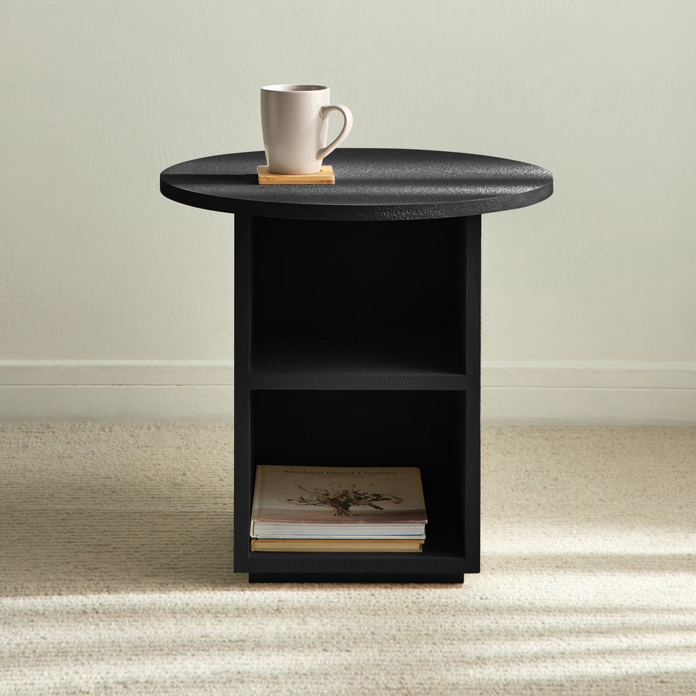 Seaside Side Table – Luxury Modern Round Accent Table with Storage Shelf for Living Room & Bedroom (Black)