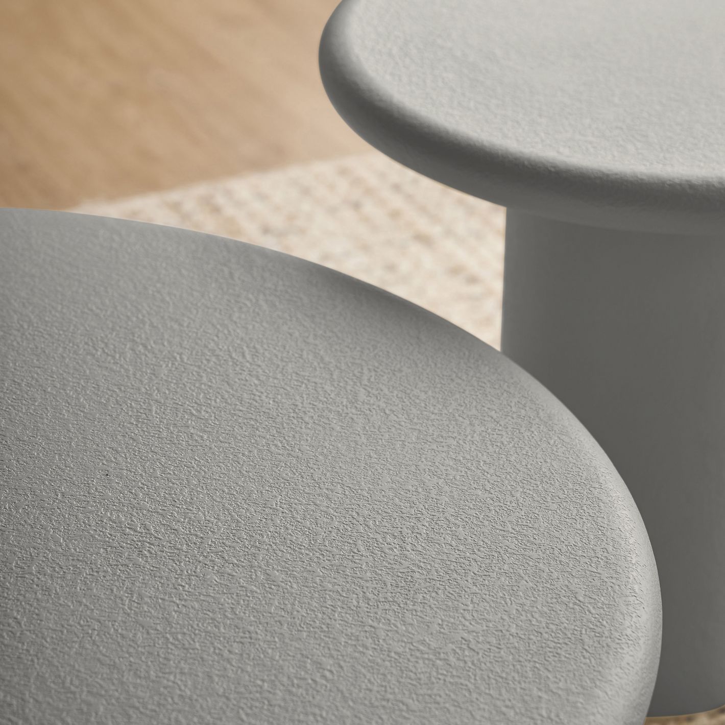 Finished in a refined plaster texture, the set adds a touch of sophistication to any space
