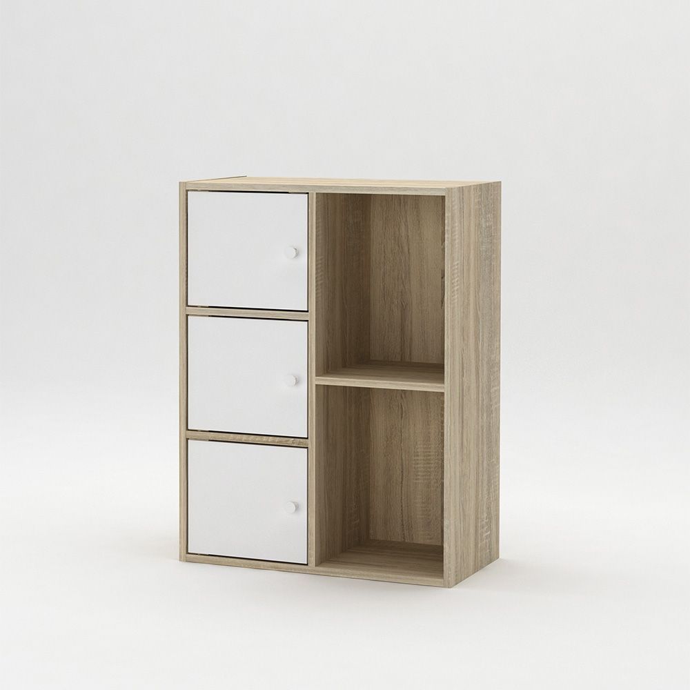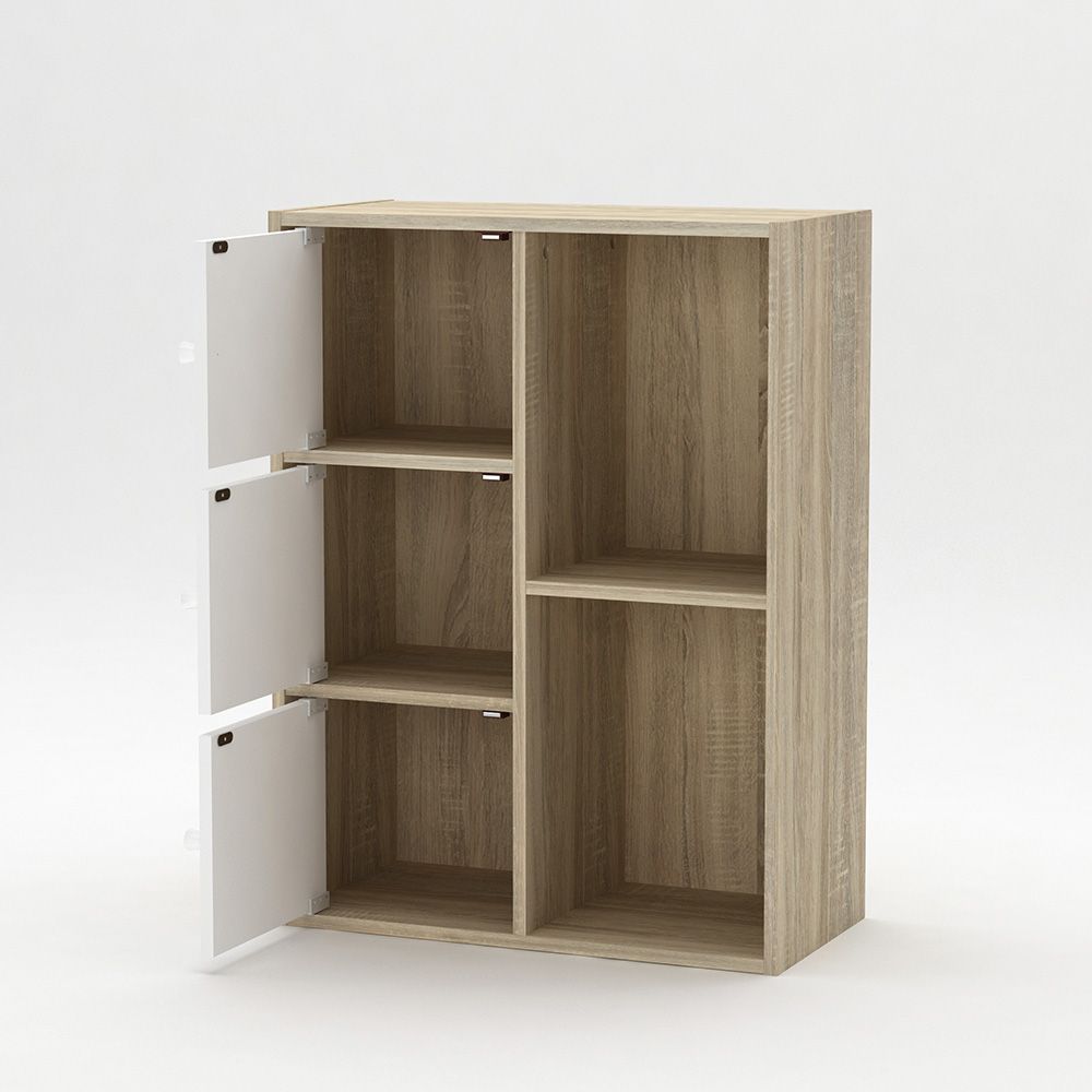 Kinder 3Door Book Case With Open Shelves-White & Sonoma Oak